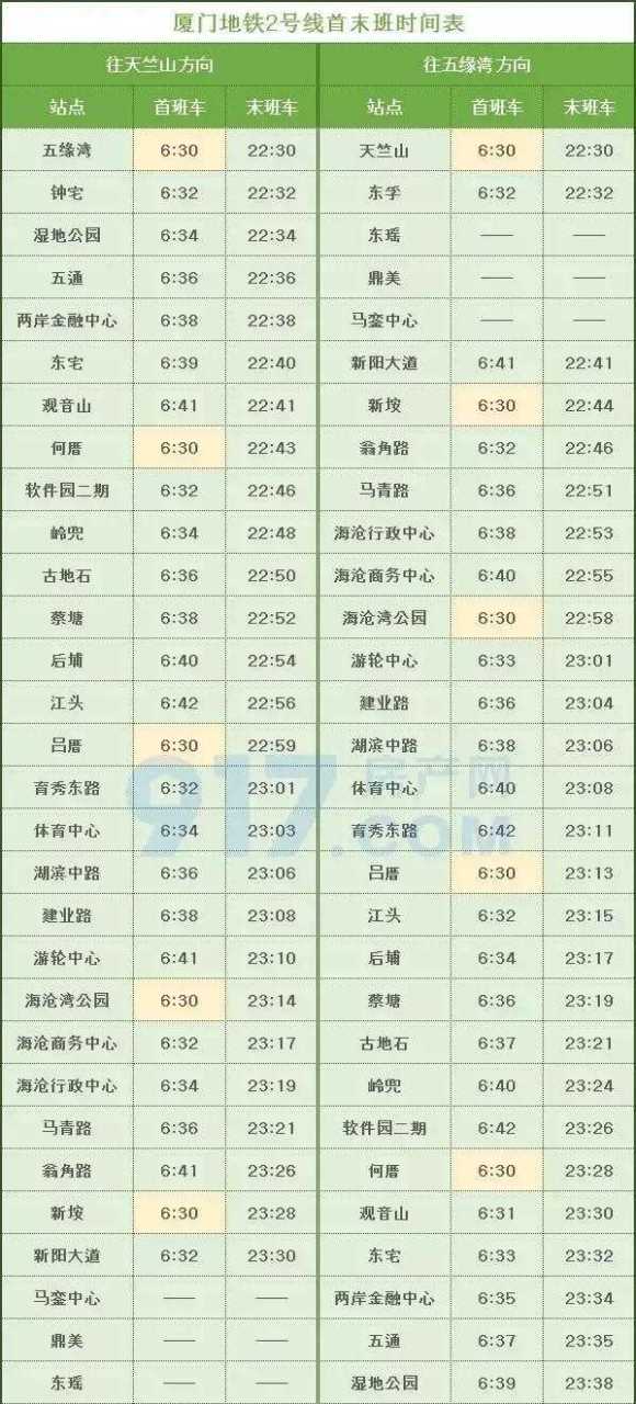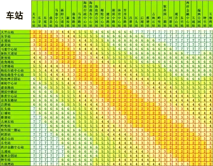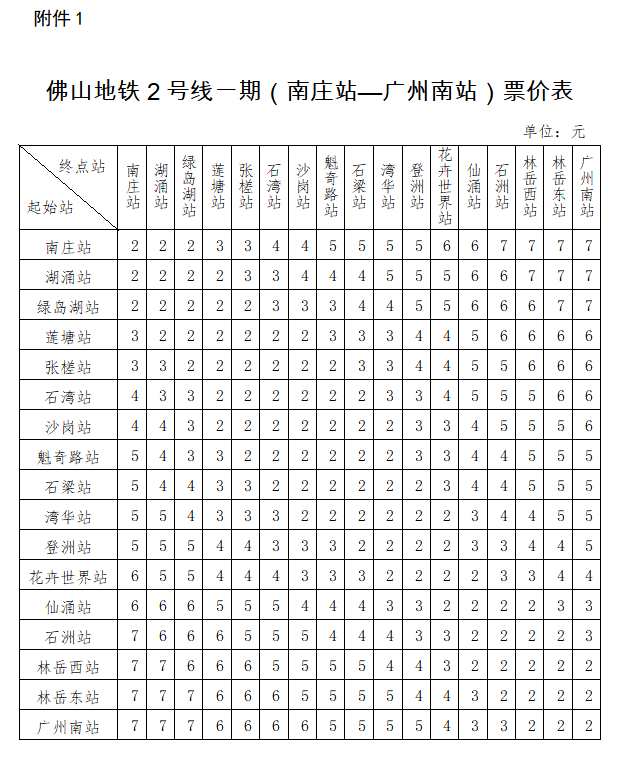 地铁2号线价目表
