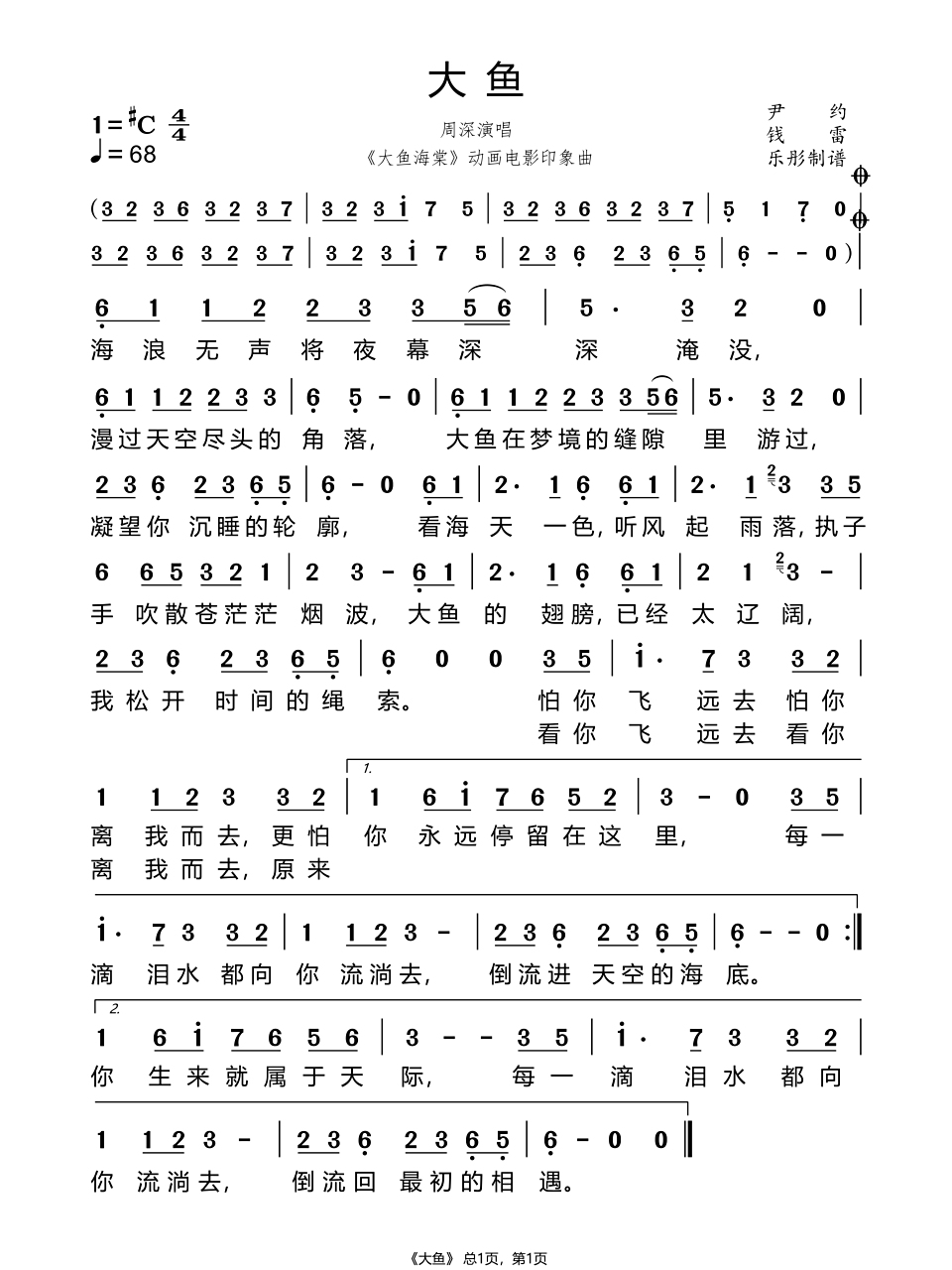 周深《大鱼》简谱详解,轻松上手!