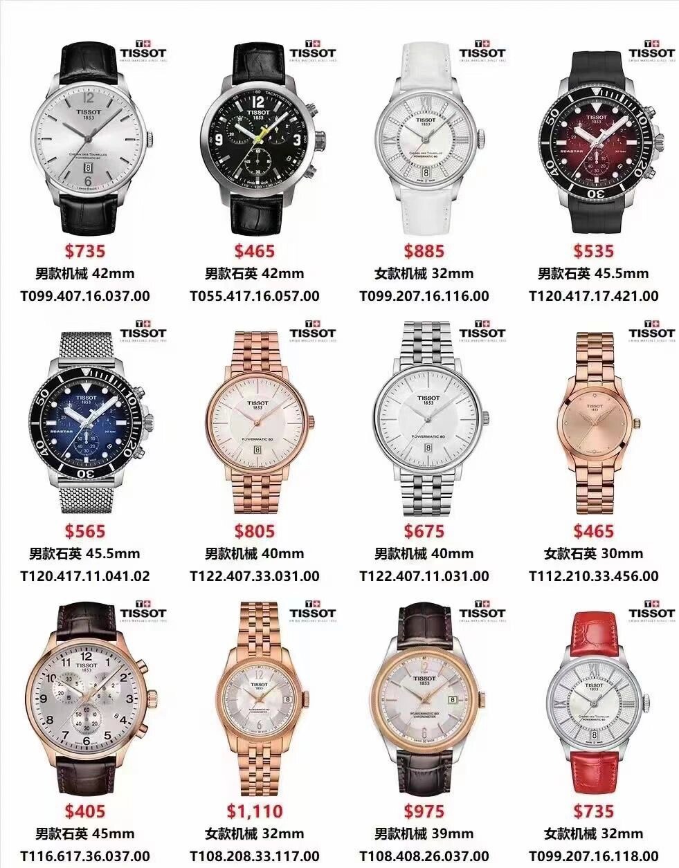 天梭女表最全款式分类合集小美人系列,小方表,小圆表,弗拉明