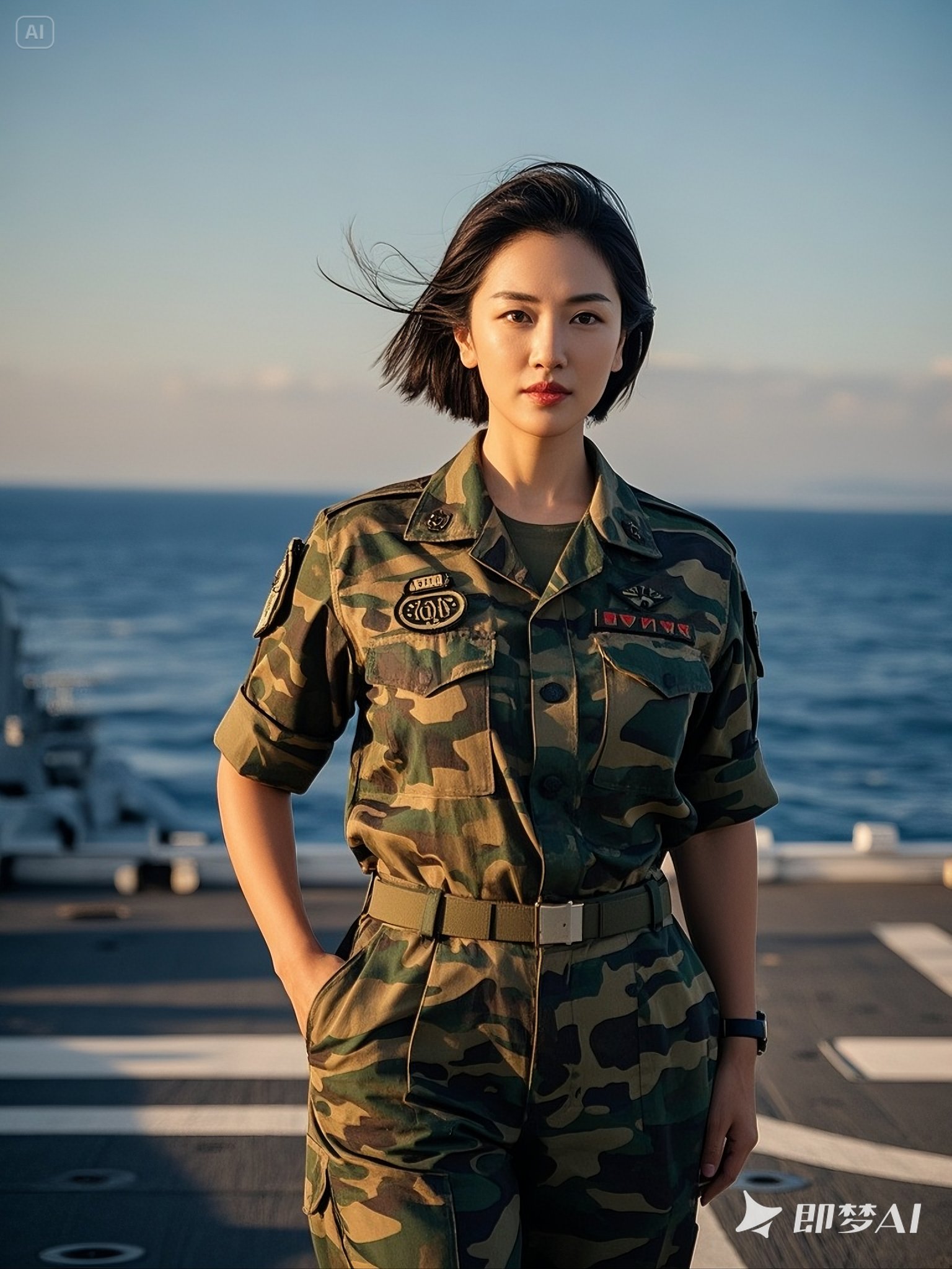 ai海畔戎装远望 #不一样的自己 ,英姿飒爽女兵