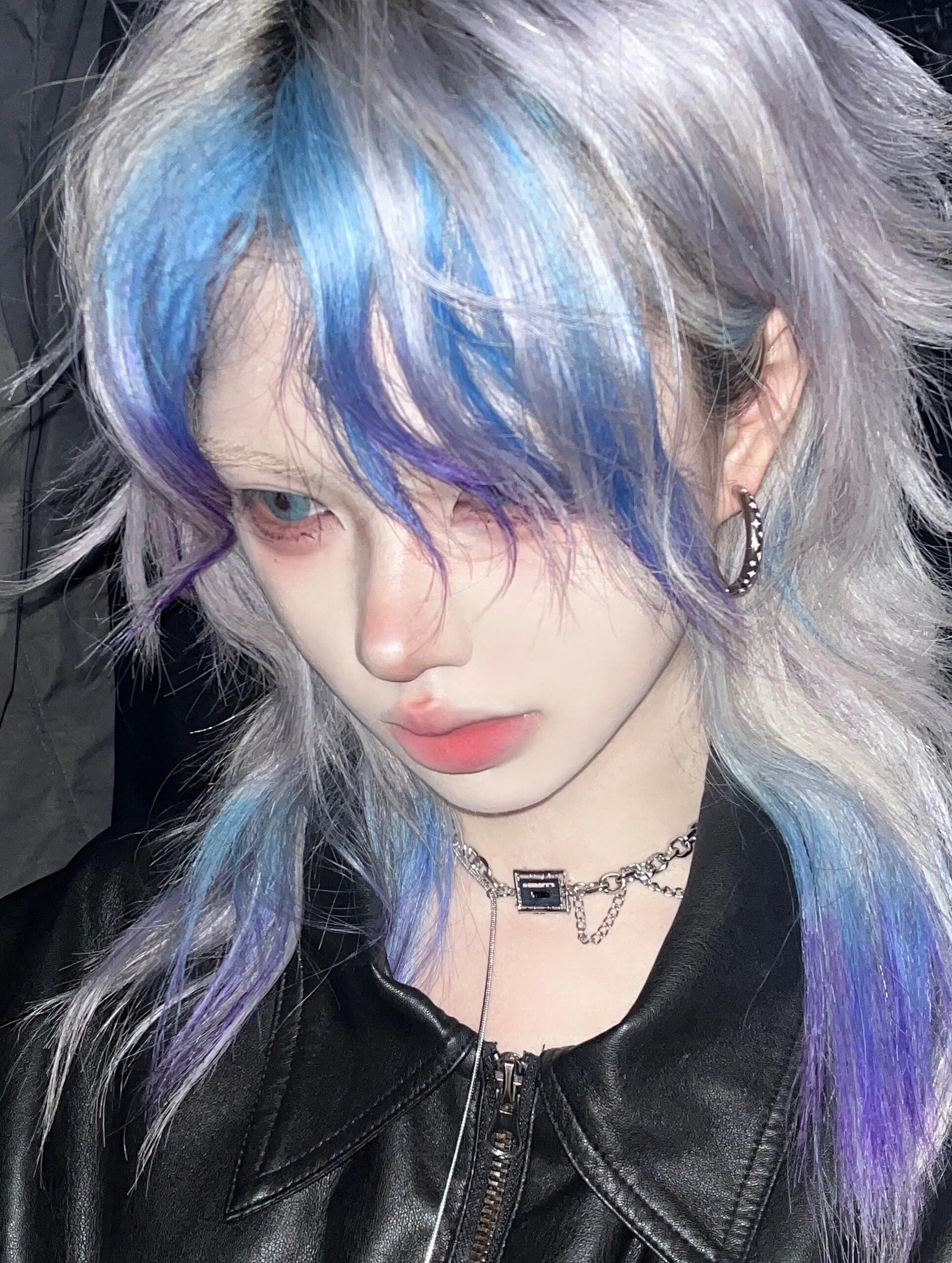 狼尾鲻鱼头搭配蓝色挑染太帅了