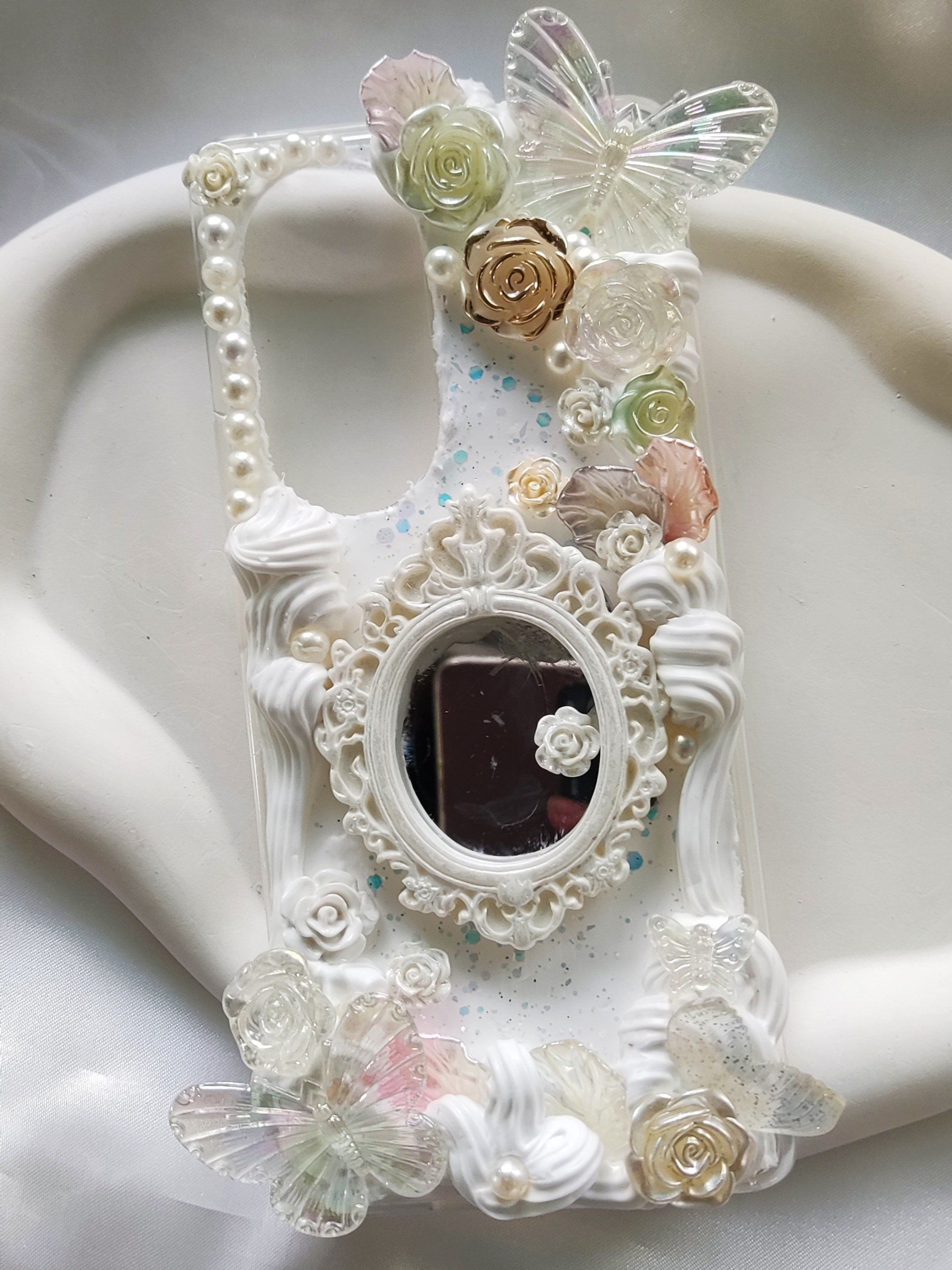 自制巴洛克奶油胶手机壳,不会挤花只能装饰来凑#手工 #奶油胶