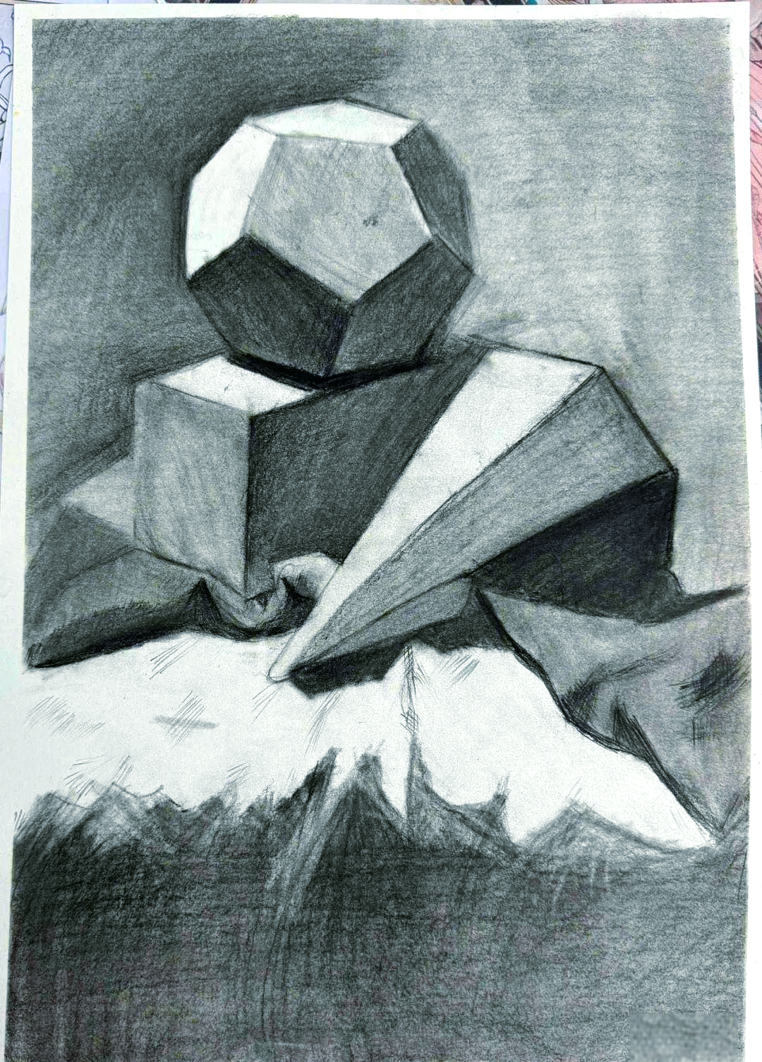 小学生几何石膏素描作品.#素描静物 #跟我一起学画画