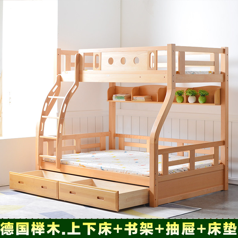 定制榉木实木儿童上下床高架双层床子母床双人上下铺高低床小户型