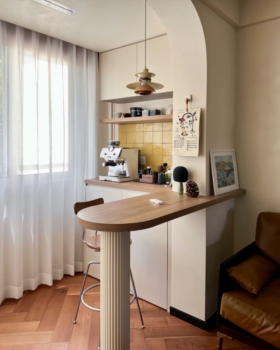 小阳台大变身:1.2米宽的完美吧台设计