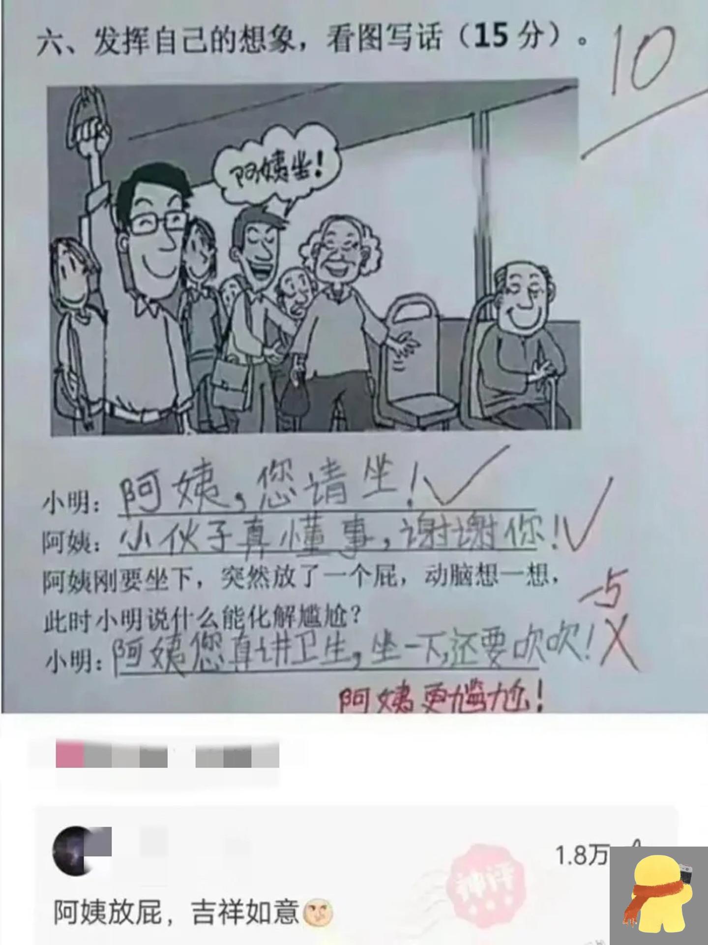 看来是我肤浅了,第一次见到这么搞笑的小学生搞笑作业,笑到我肚子痛