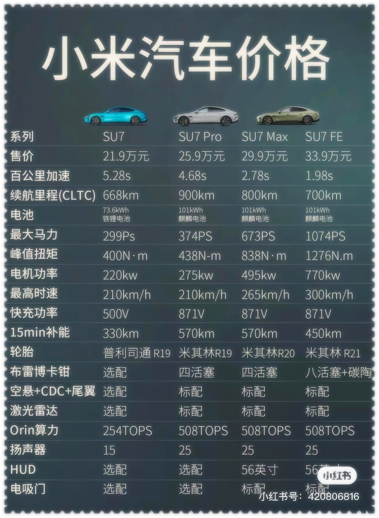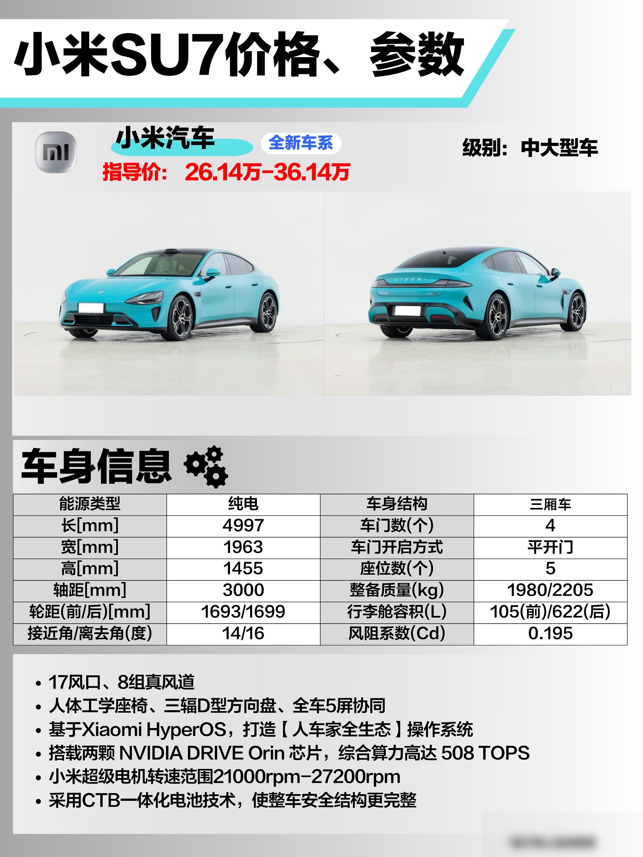 小米su7电车,21.59万起!