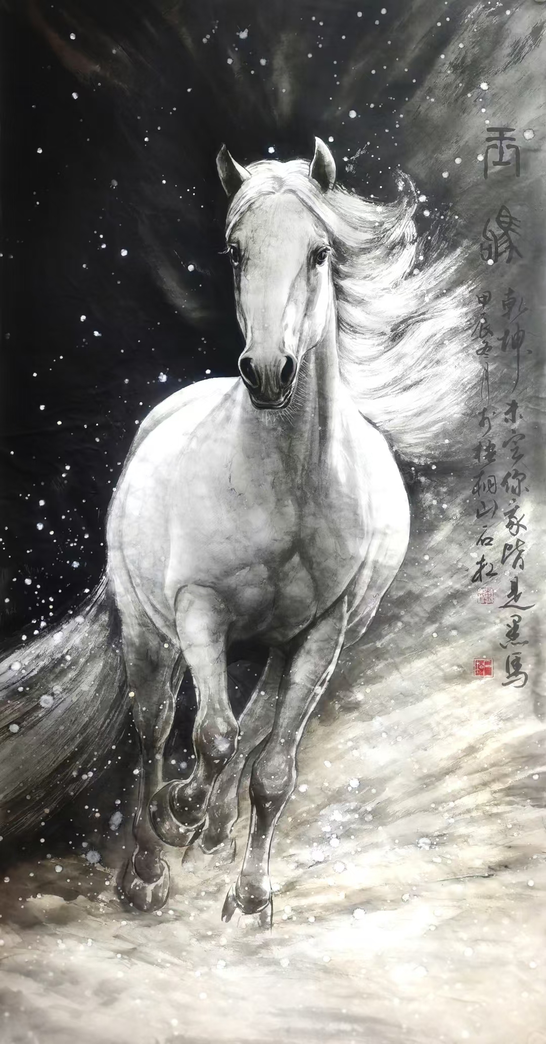 黑白骏马,自由奔腾,不负韶华.邢新平老师作品马到成功#美术作品