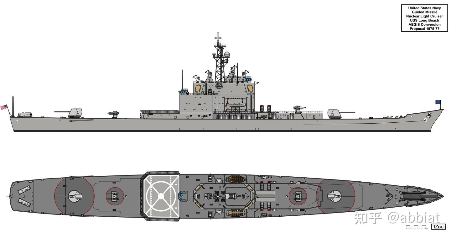 055和提康德罗加级导弹巡洋舰俯视图对比,可以看到虽然两者的吨位差不