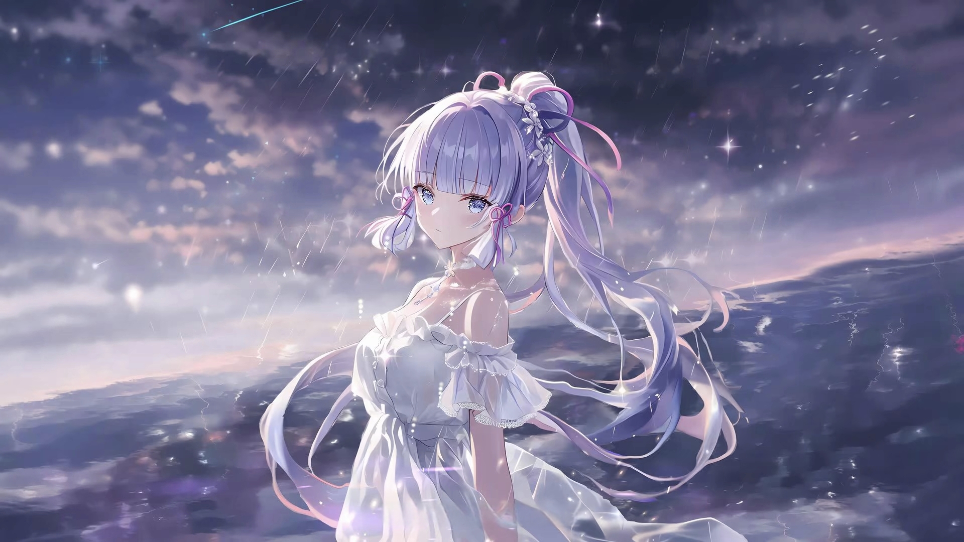 女孩姿势微笑星星云动漫4k壁纸3840x2160