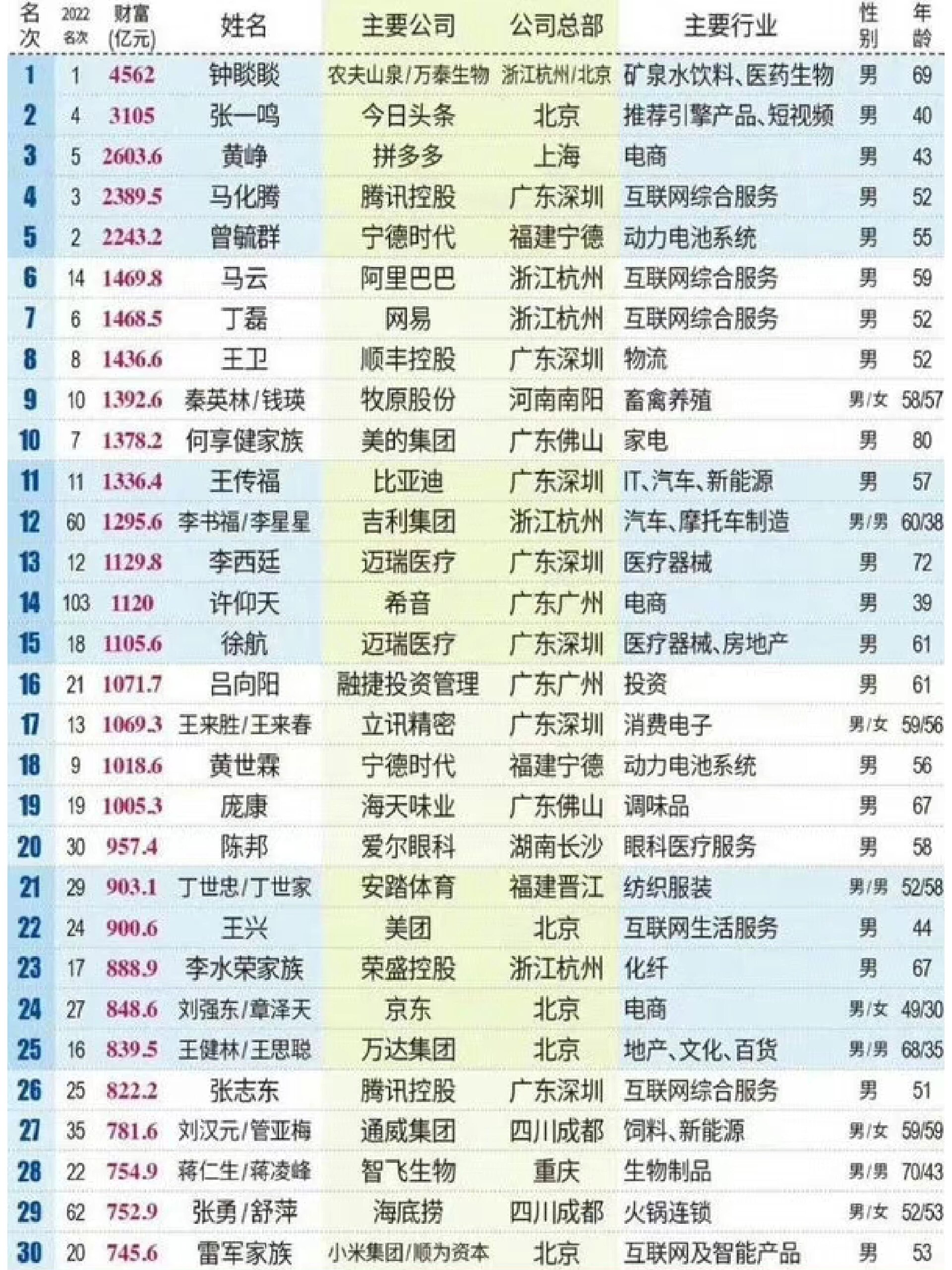 2022富豪榜:三巨头争霸
