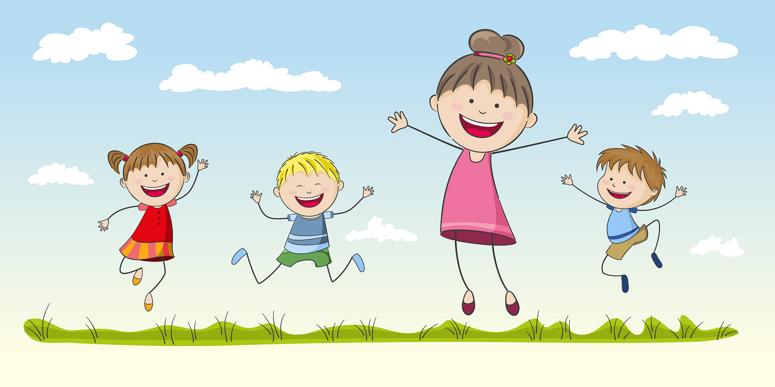 卡通快乐的三个小孩跳起来六一儿童节插画