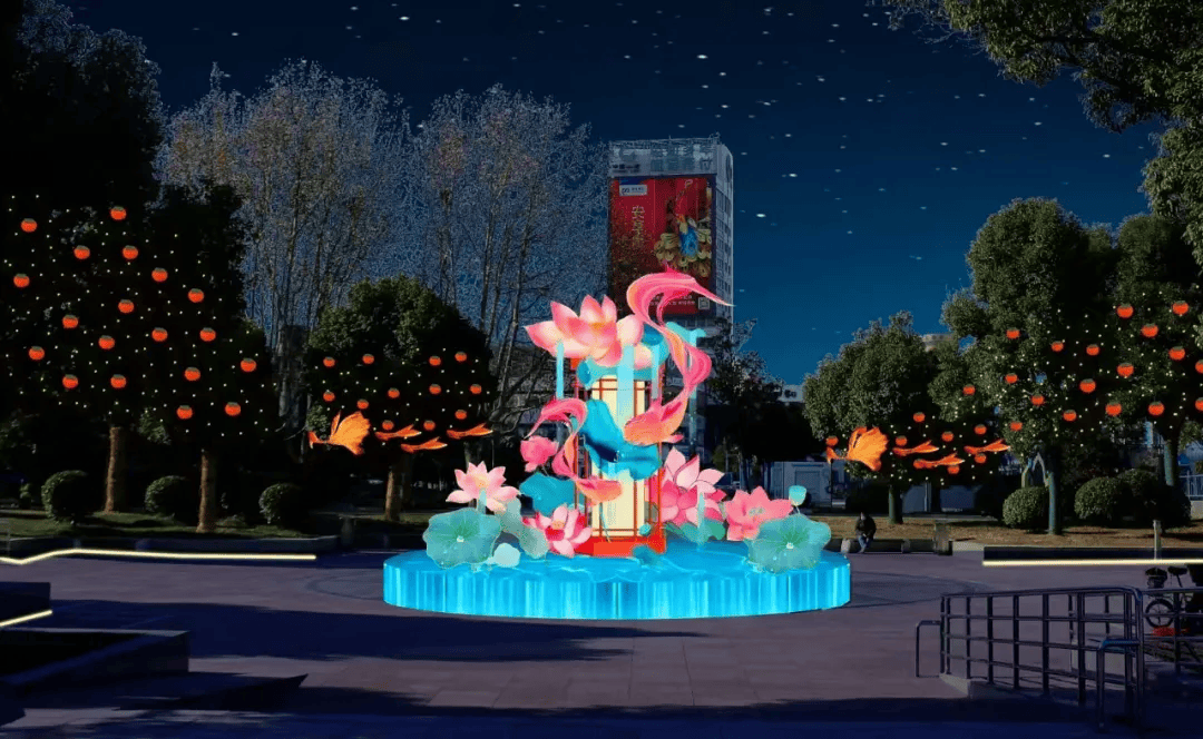 好运锦鲤彩灯花灯灯组不同场景灯光设计效果