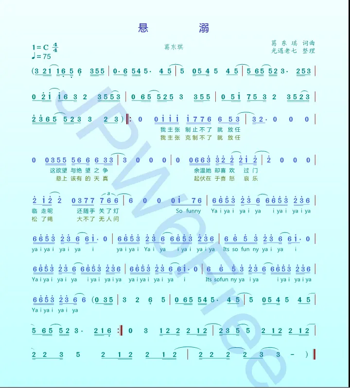 悬溺 葛东琪 歌谱简谱网