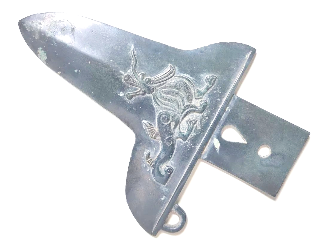 🔍 铜戈的造型独特,上面雕刻
