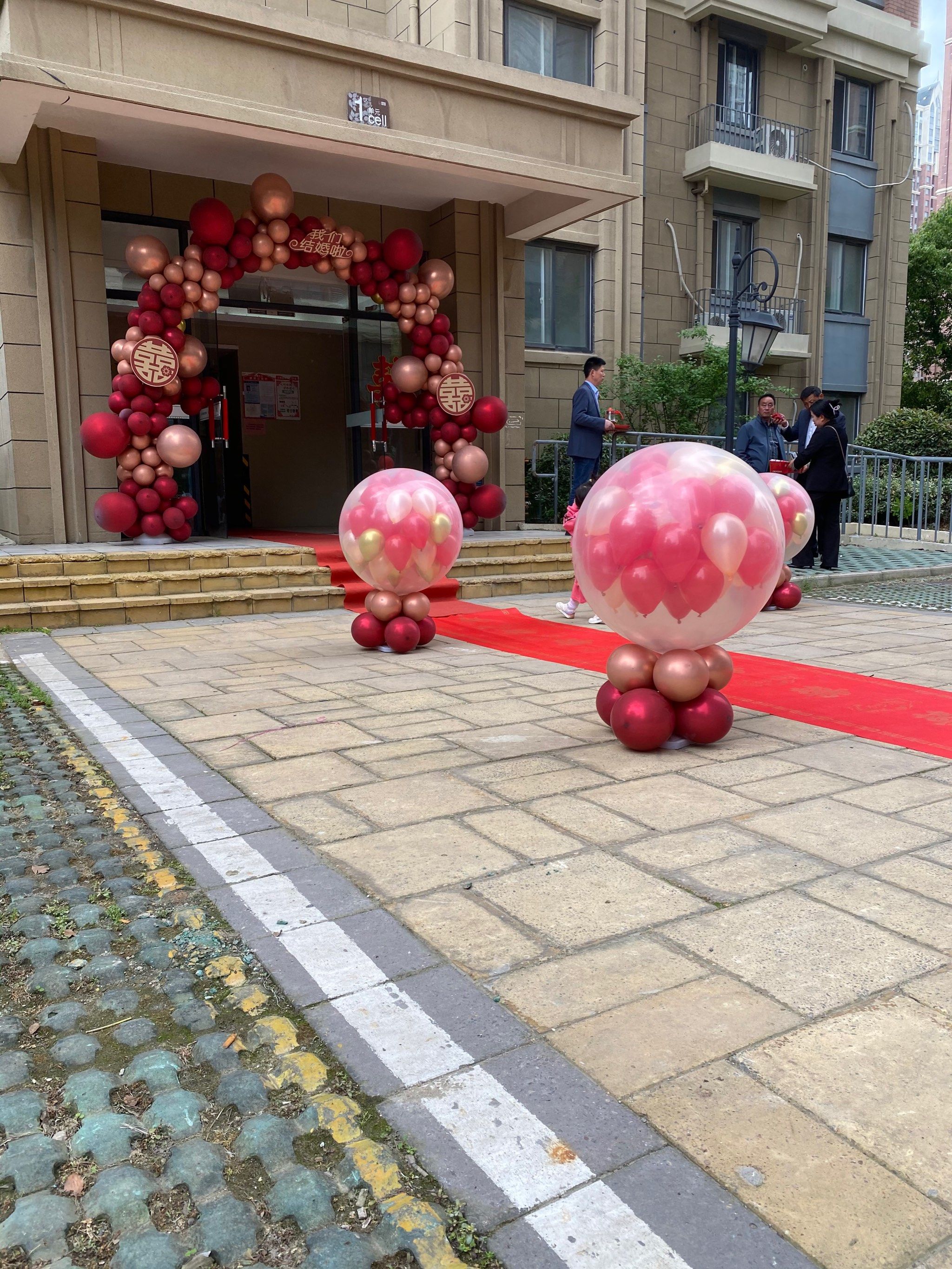 红色系的气球拱门特别喜庆,家里