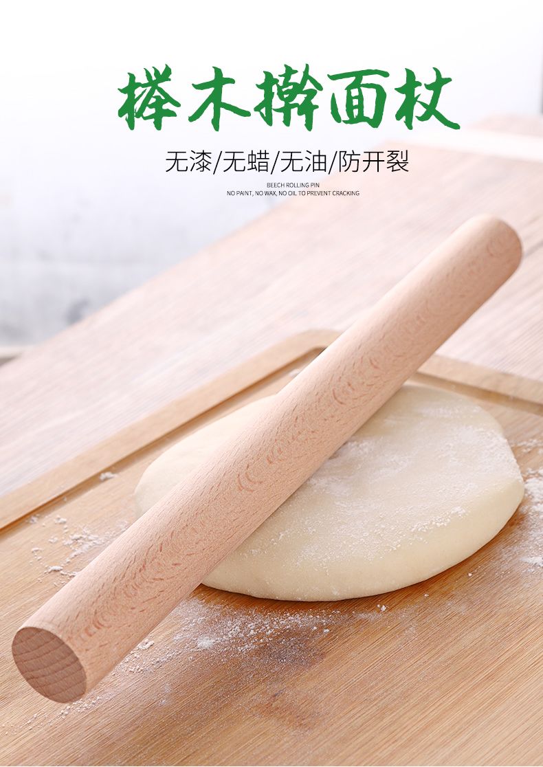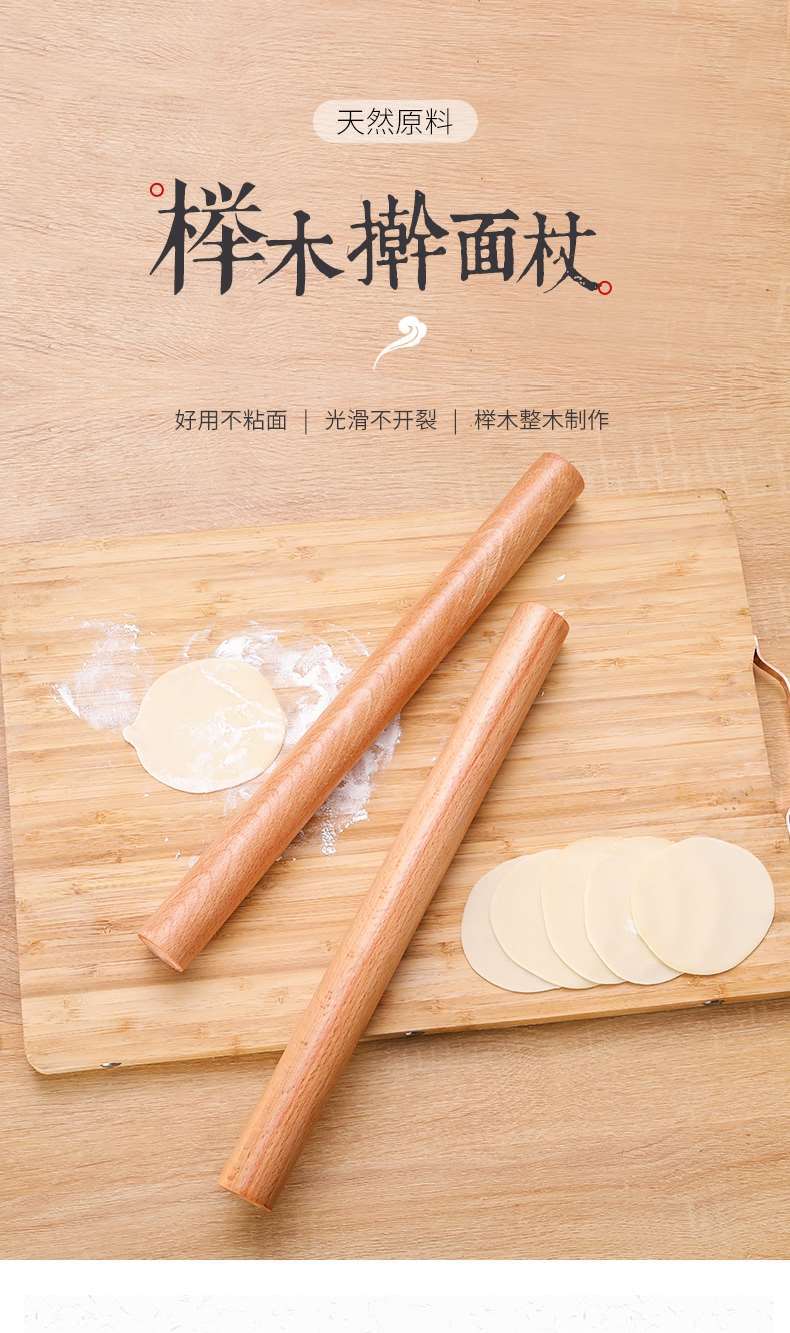 加粗榉木擀面杖5080cm天然木质擀面棒大号压面棍烘焙饺子皮工具