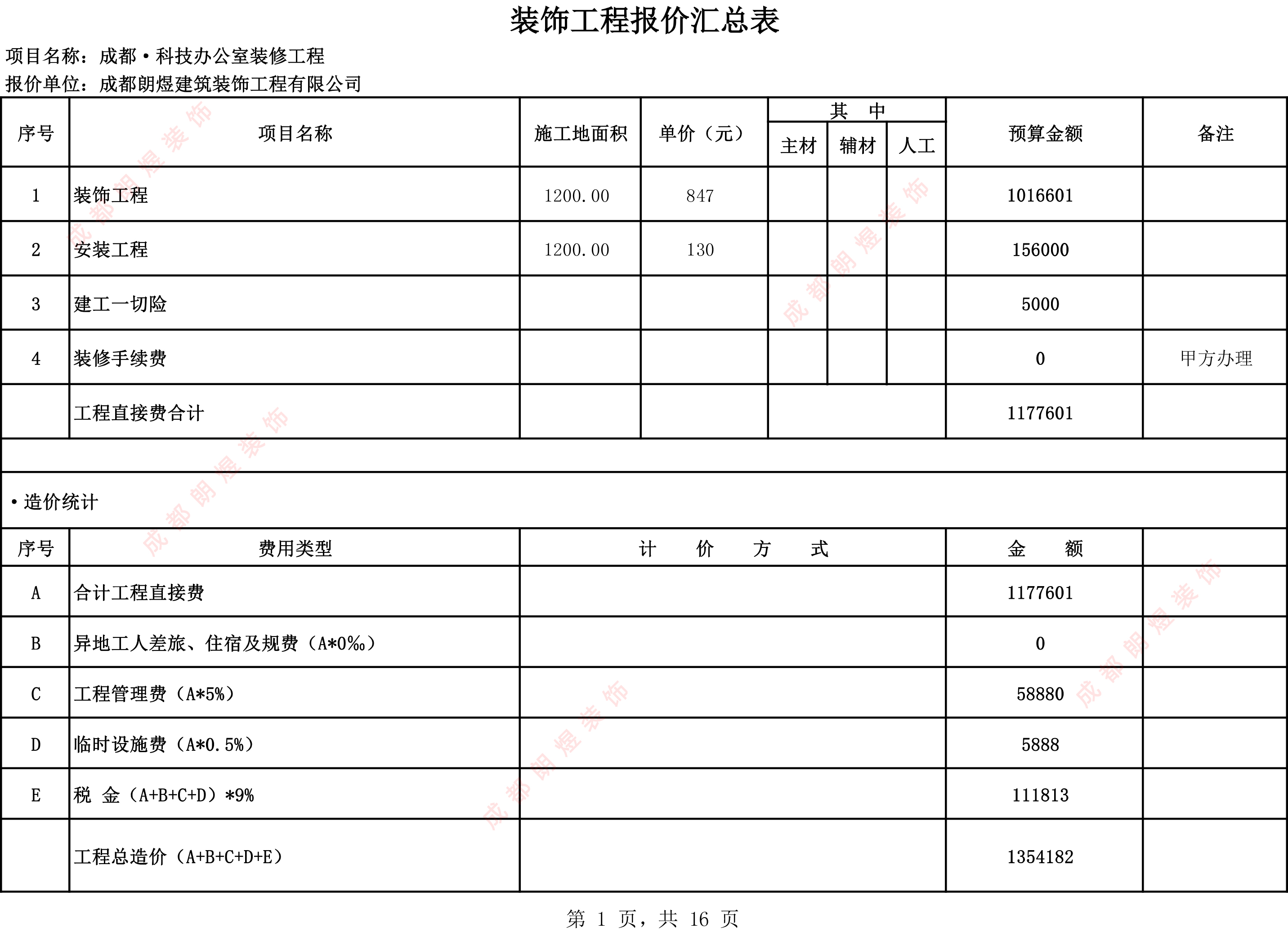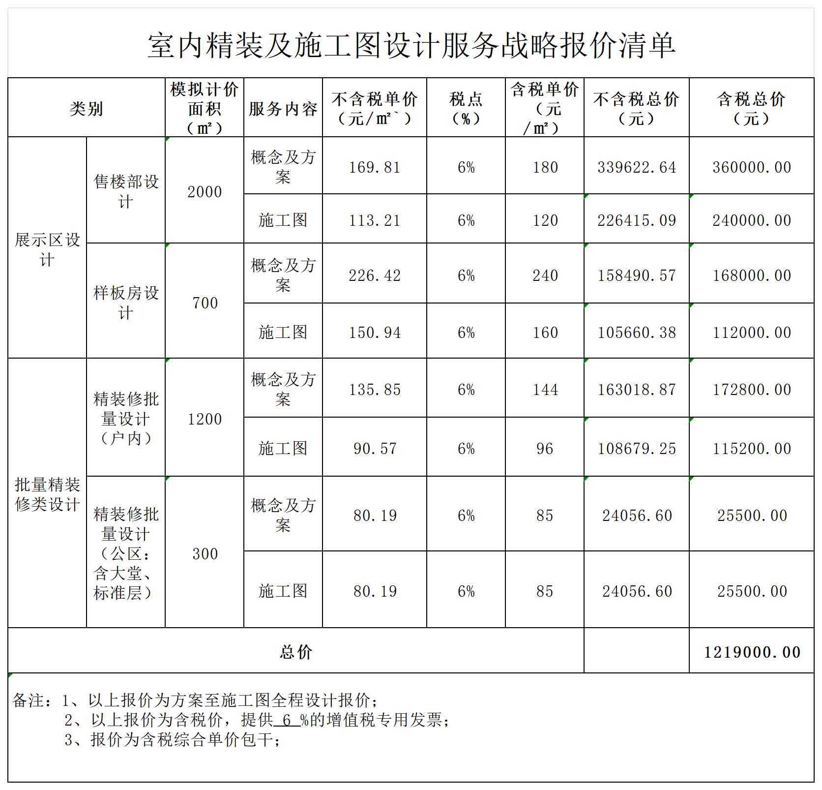 施工图设计报价单