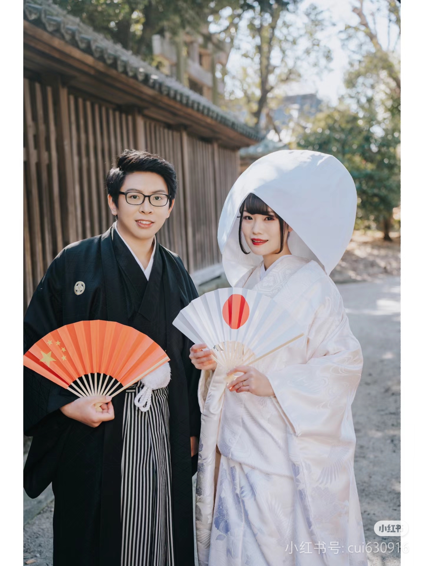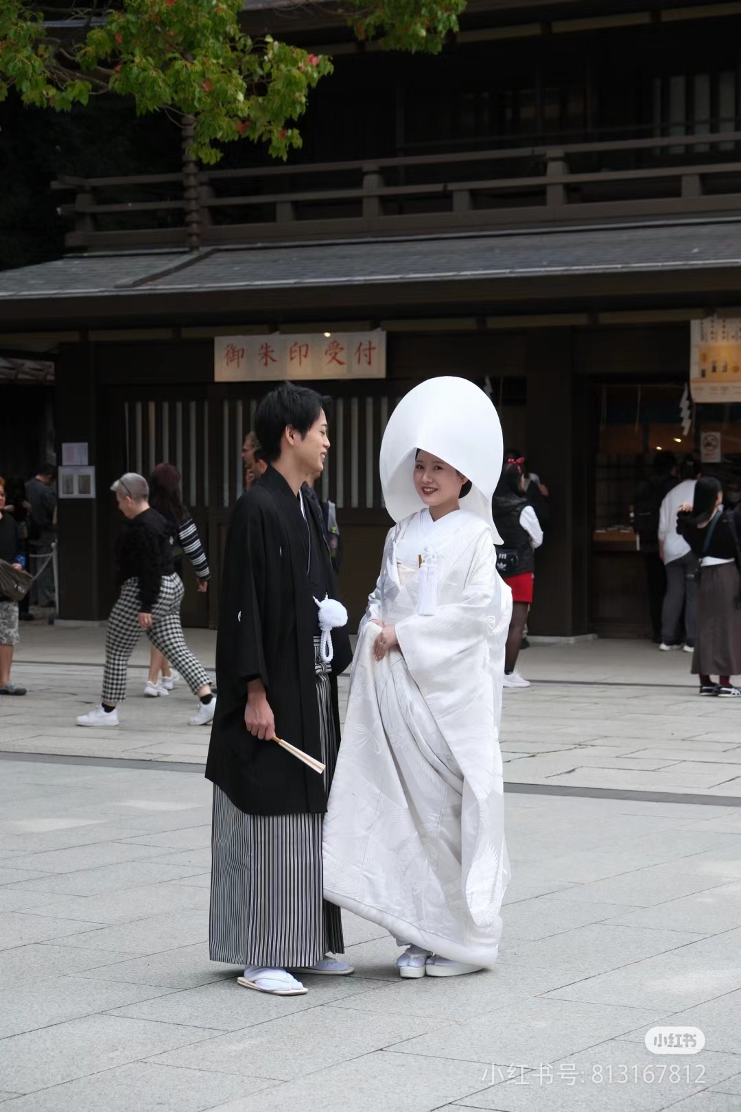 日本的新娘装是白色的!新郎穿着一种叫袴的服装