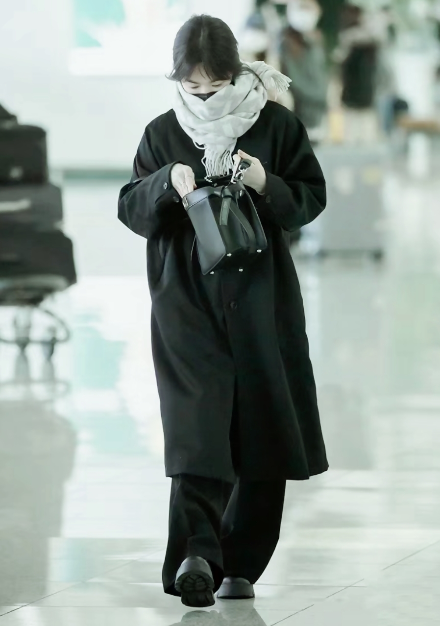 一身保暖的冬装造型,看着又舒适又时尚,这才是明星走机场该有的样子吧