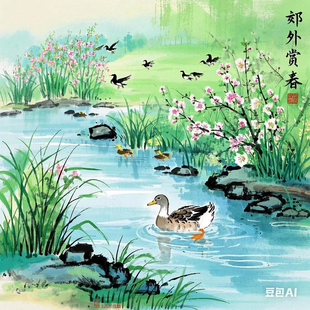 春天国画景色