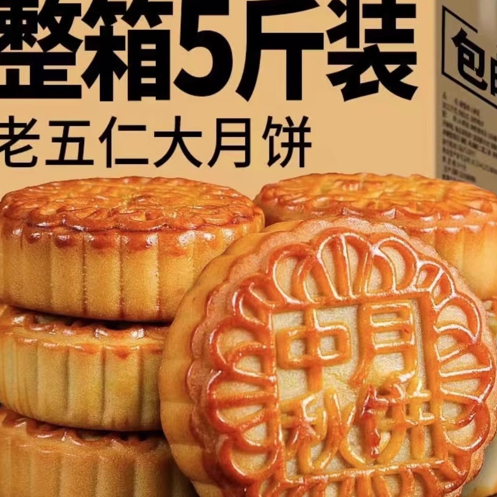 五仁大月饼大个老式传统口味月饼批发独立装散装礼盒新鲜发货