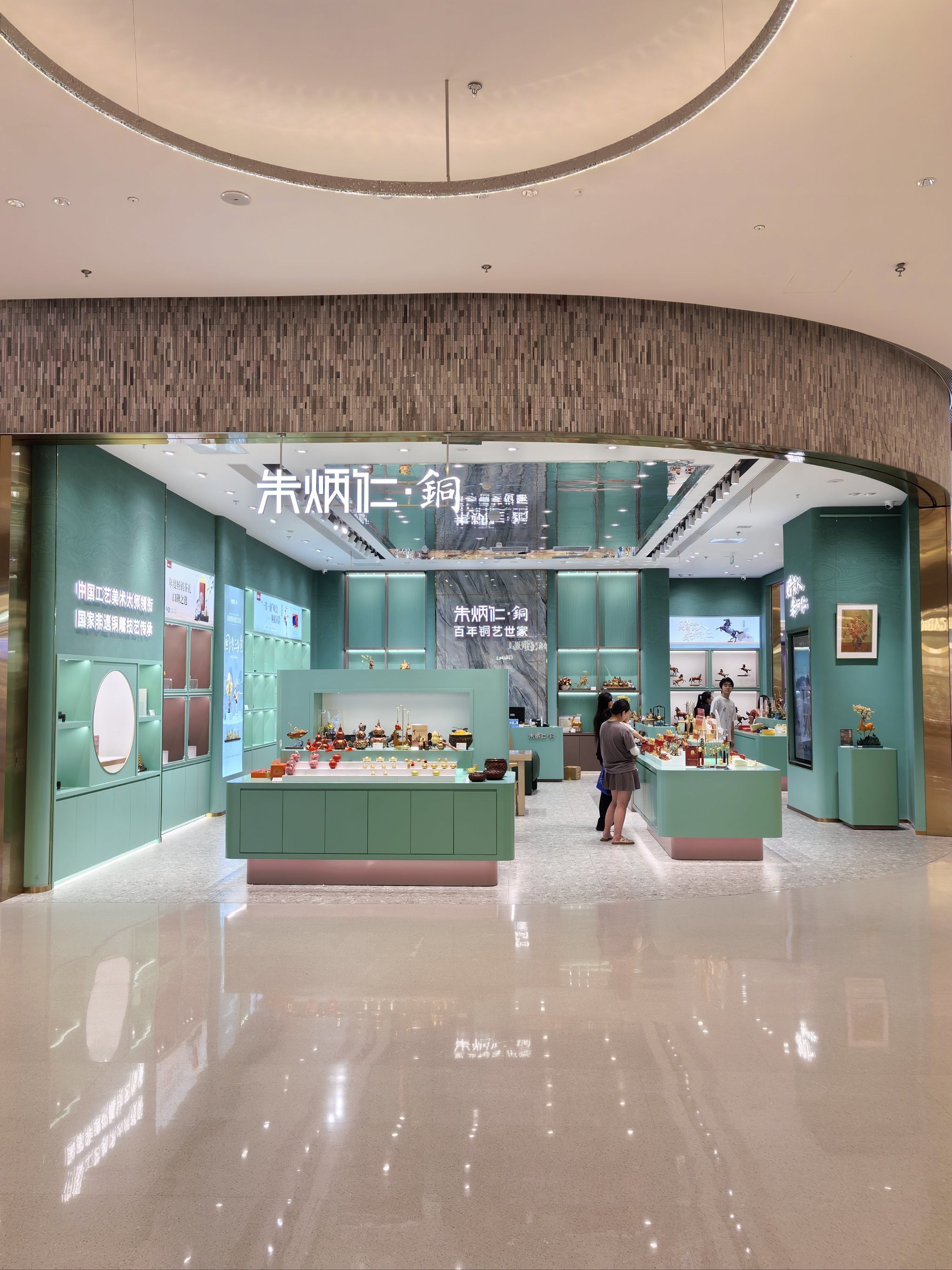 南京商场,朱炳仁铜,多径点位展柜定制,店铺装修,南京中强展柜厂