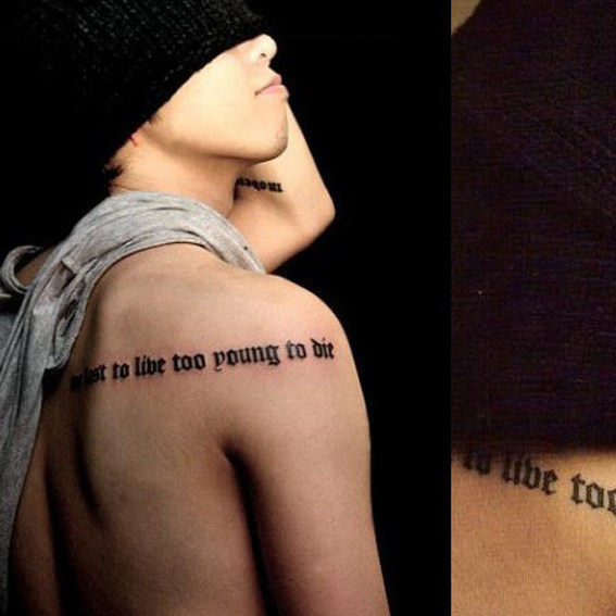权志龙后背时尚的英文刺青图片tag标签:时尚权志龙英文胸部边上的花朵