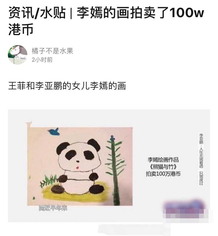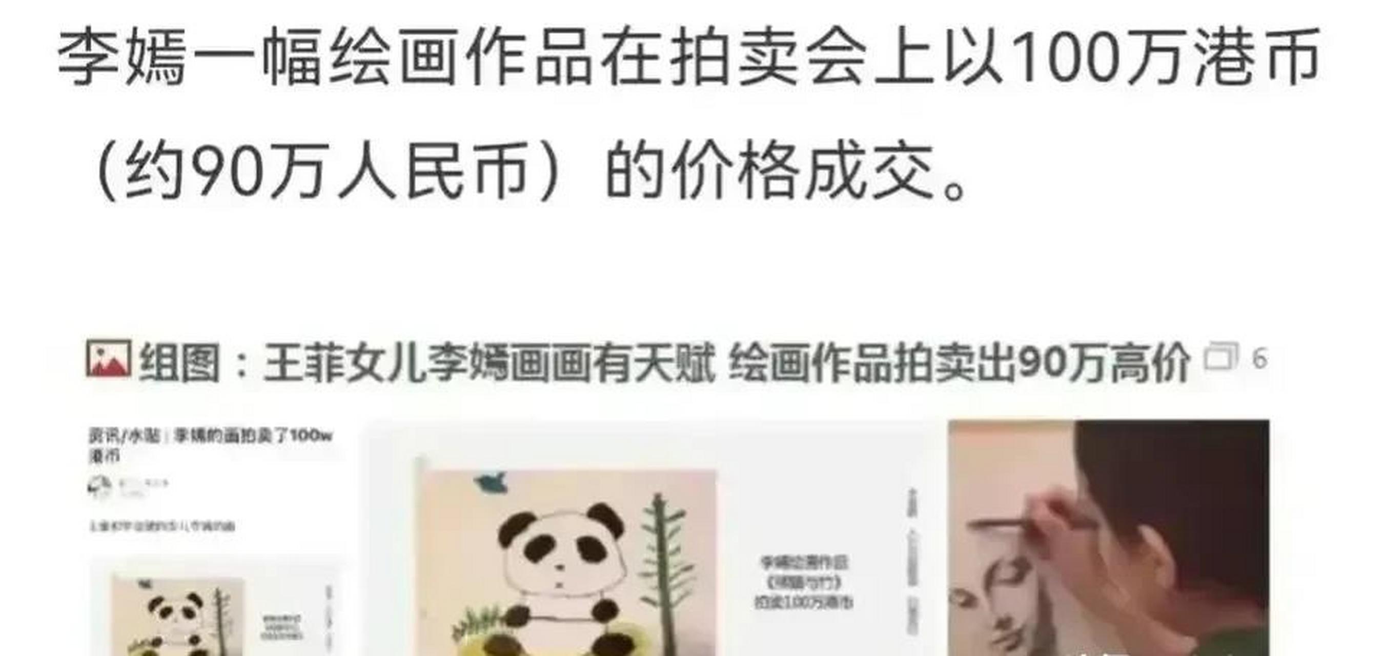 李嫣亲手画被卖100万,网友看后调侃:妈不是王菲9毛都不值