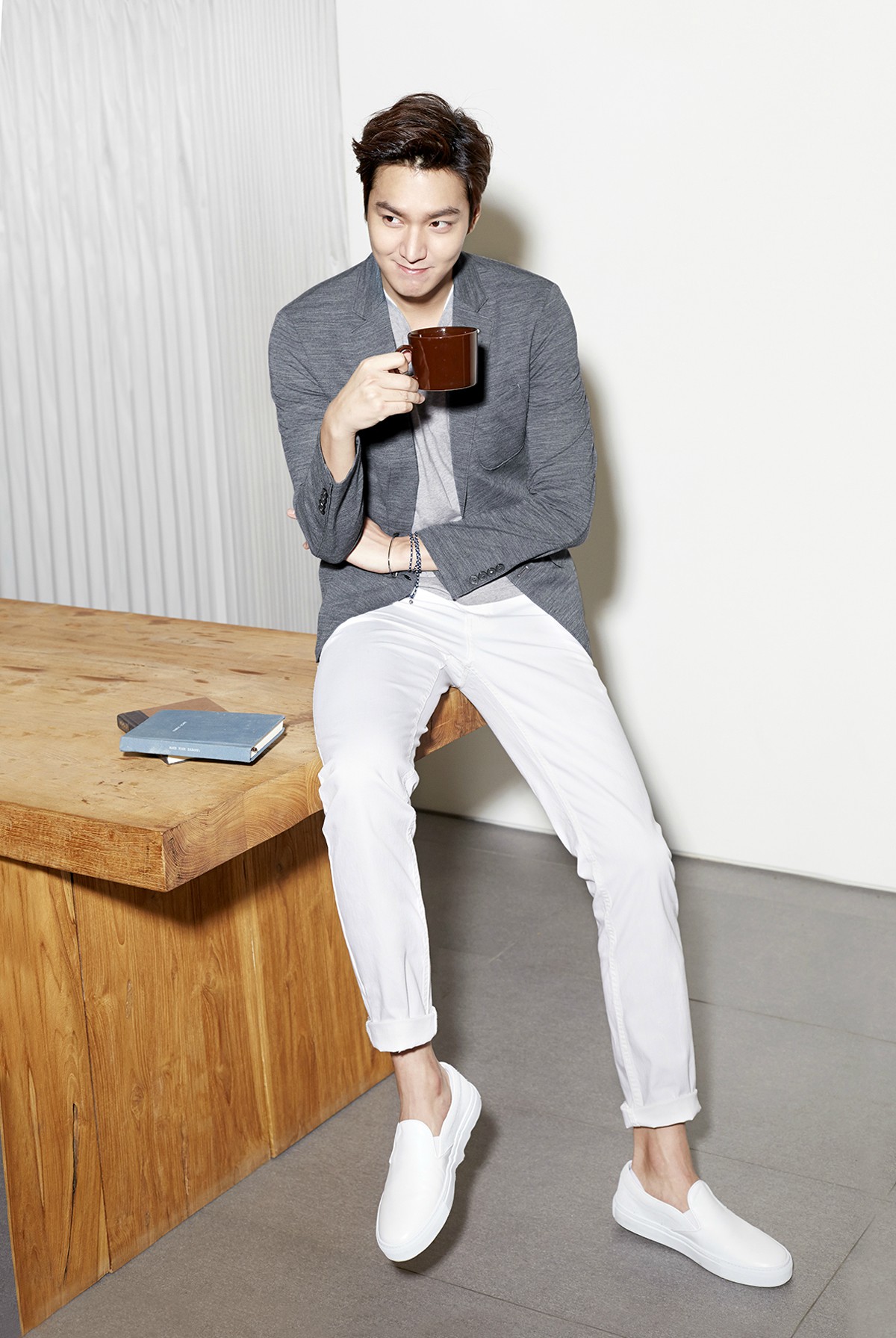 李敏镐在穿白衬衣的时候,很注意细节,领口解开一个扣子,袖子挽起,与九