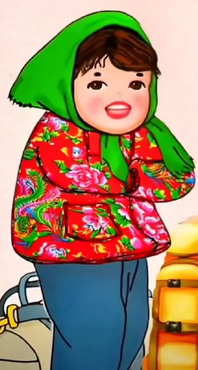 花棉袄小女孩头像 每天穿着不一样的花棉袄,带着不一样颜色的花头巾