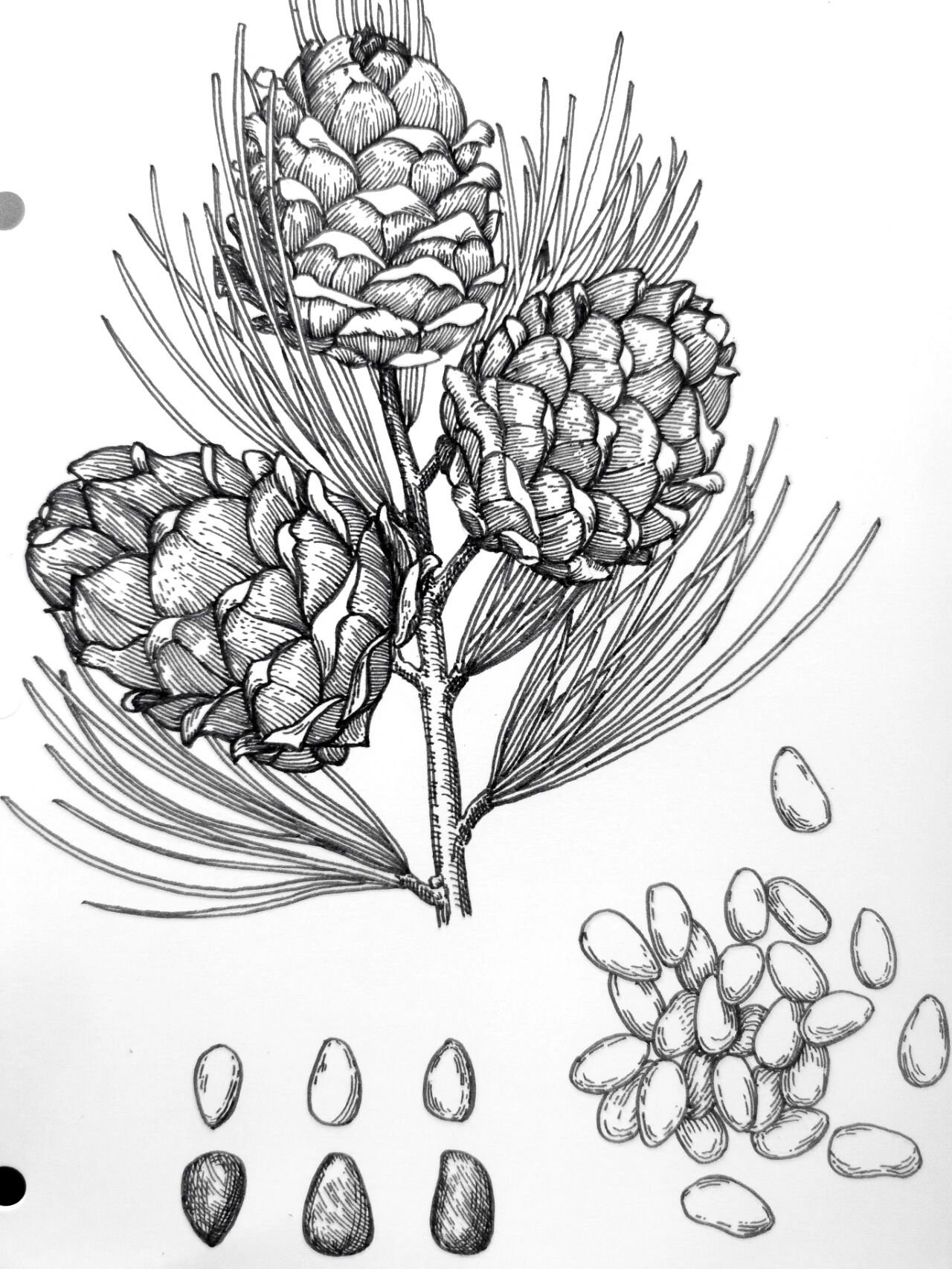 钢笔画松果