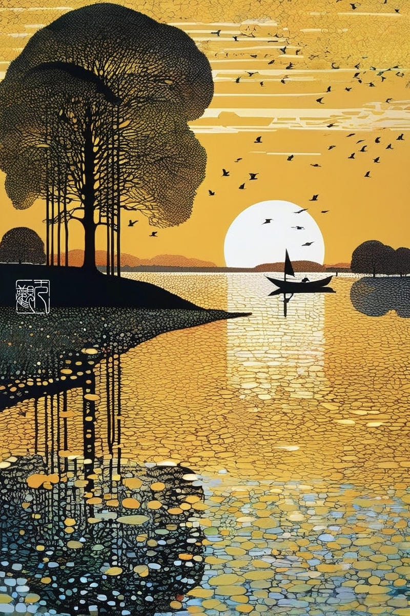 版画《水韵美景》