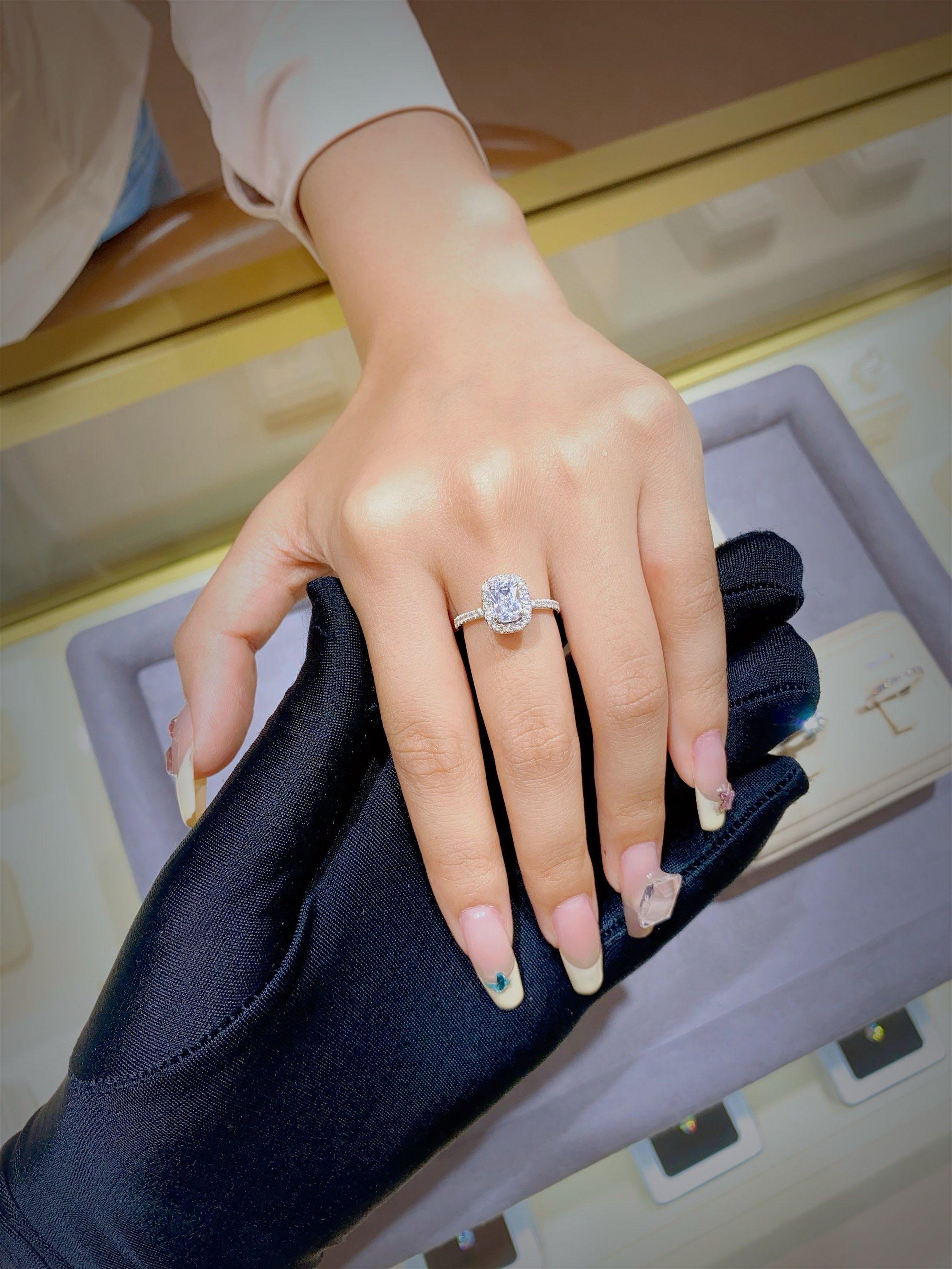 枕型白钻戒指