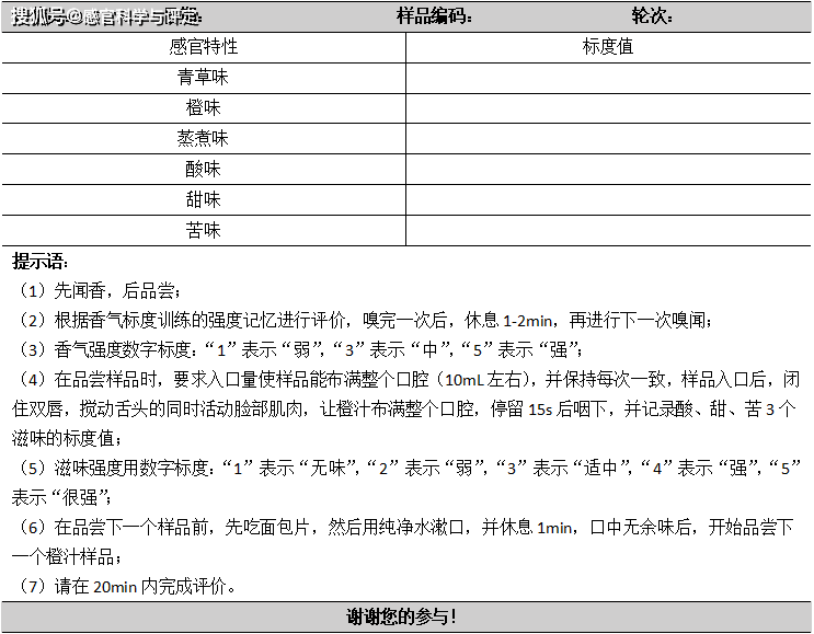 果干感官评价表