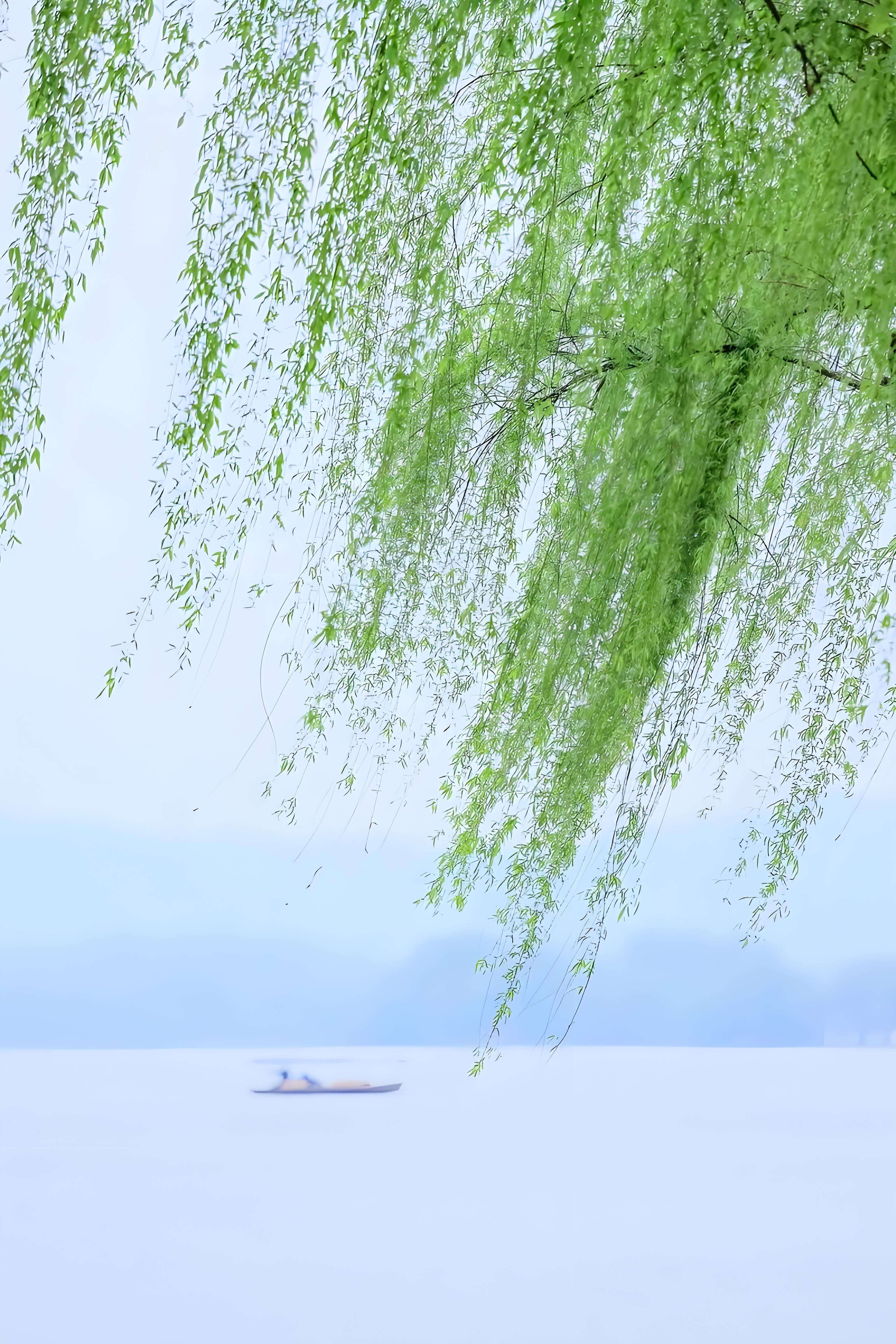 细长的柳枝随风轻摆,宛如婀娜舞者
