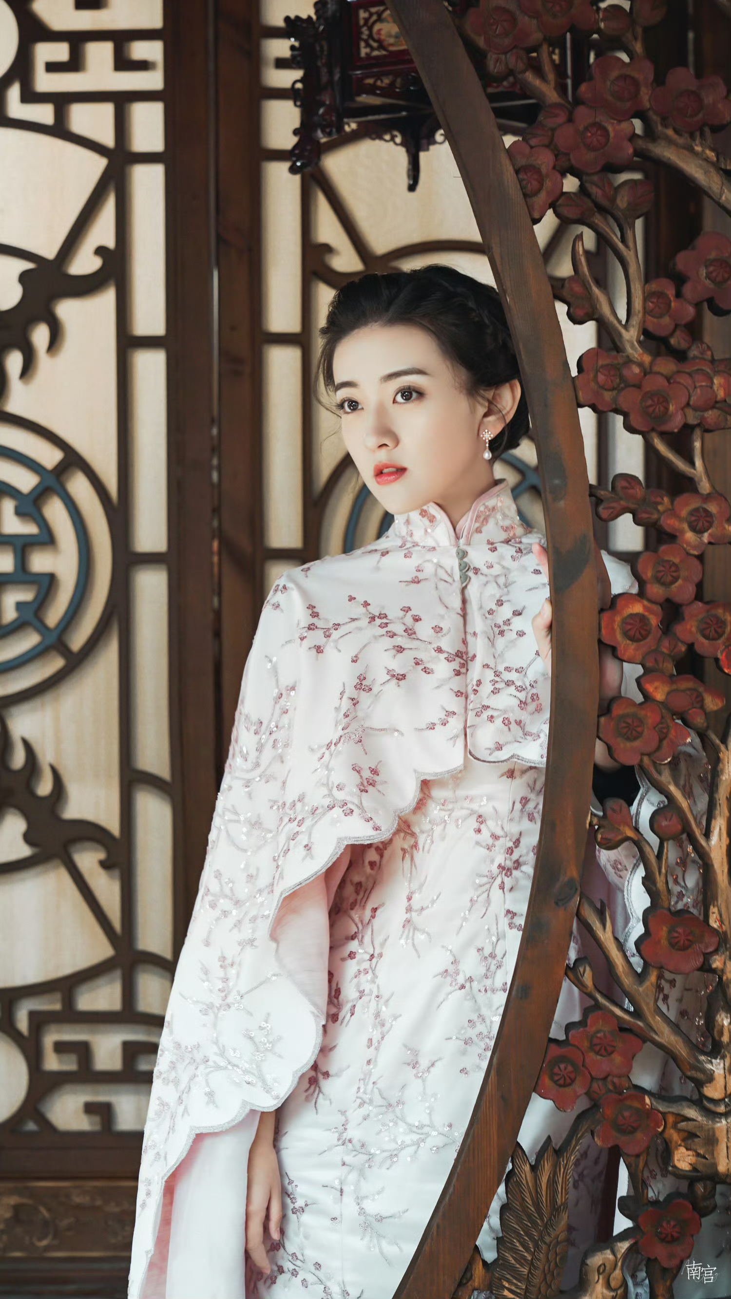 梁洁银白旗袍写真,勾勒东方极致温婉优雅