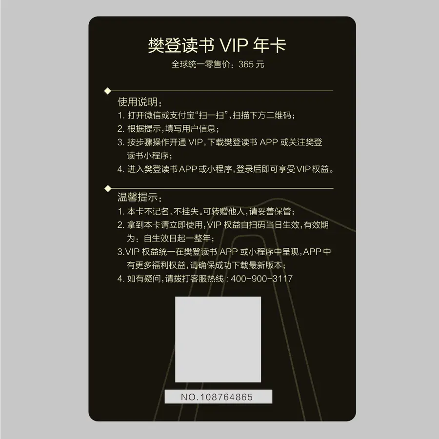 樊登读书会vip卡公司发的闲置出售支持在线刮开扫描也可自费快递