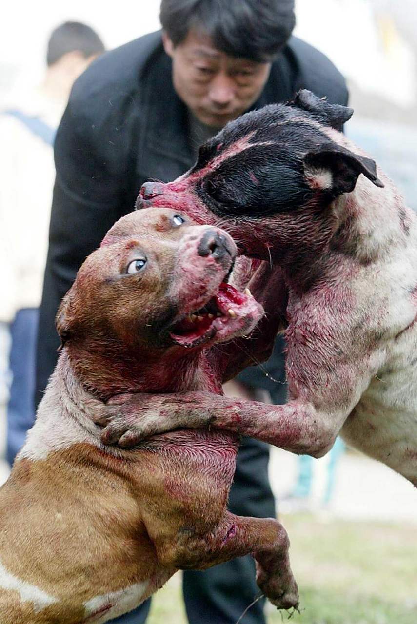 斗狗现场,比特犬被按在地上摩擦