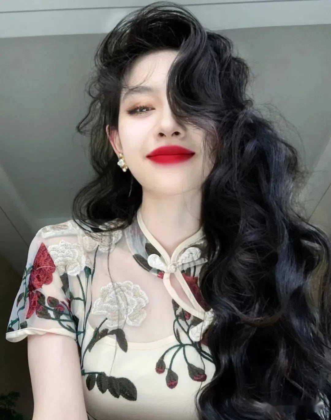 自然少不了旗袍的造型,但她的发型设计,多为"渣女"的大波浪卷,更加
