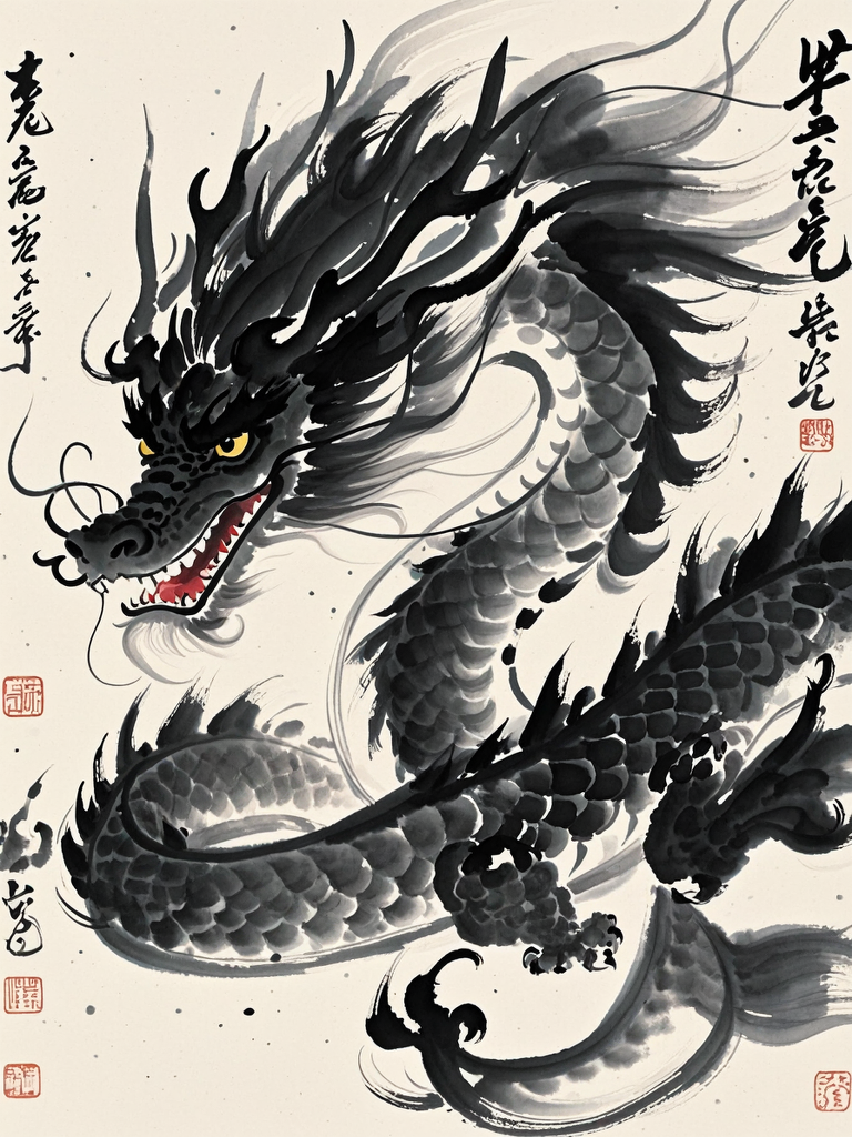 墨舞龙魂:中国写意水墨画中龙的笔墨神韵与技法解析