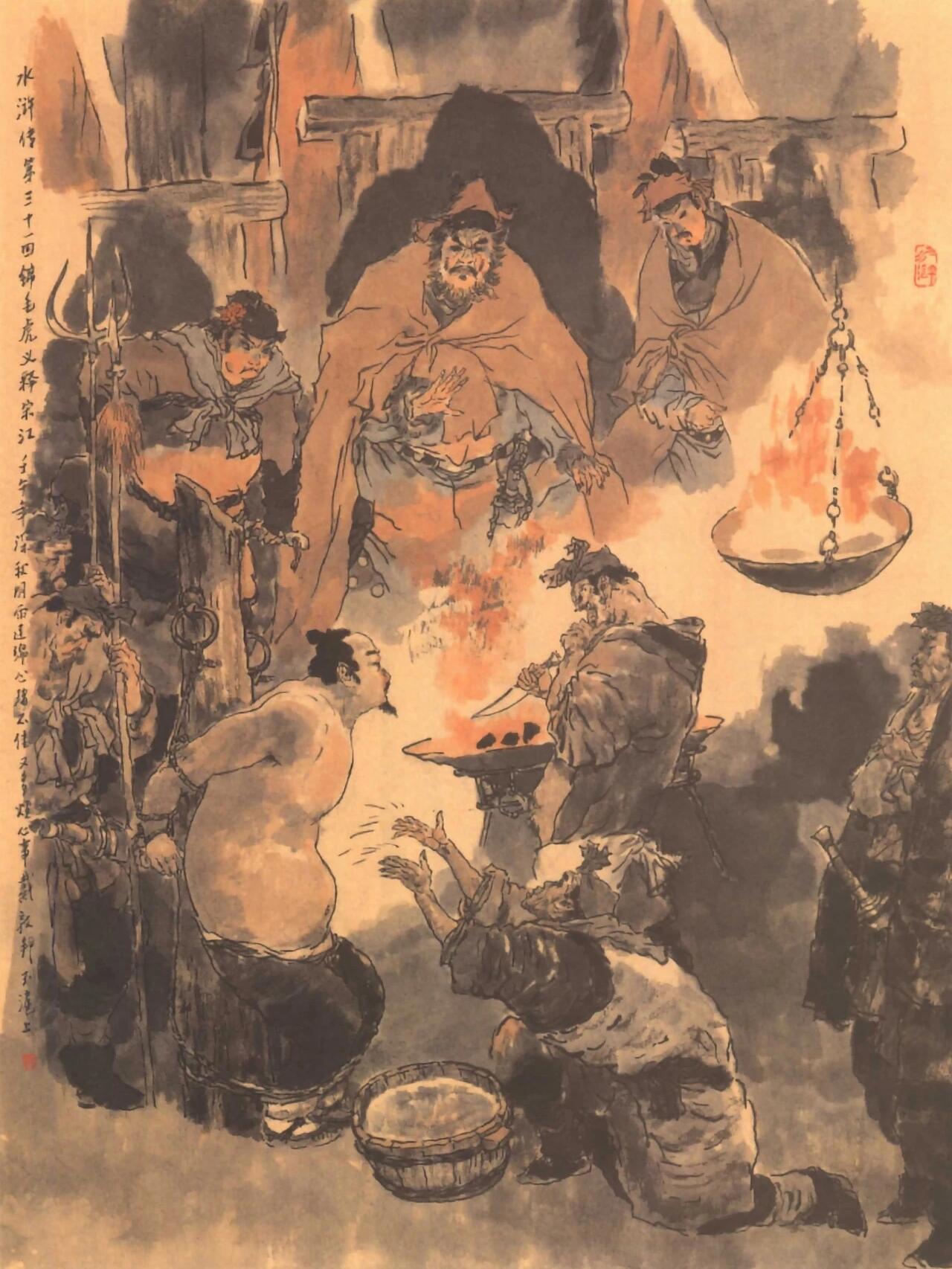 国画大师戴敦邦绘制的《水浒传》 插画作品,用厚重的色彩描绘了小说中