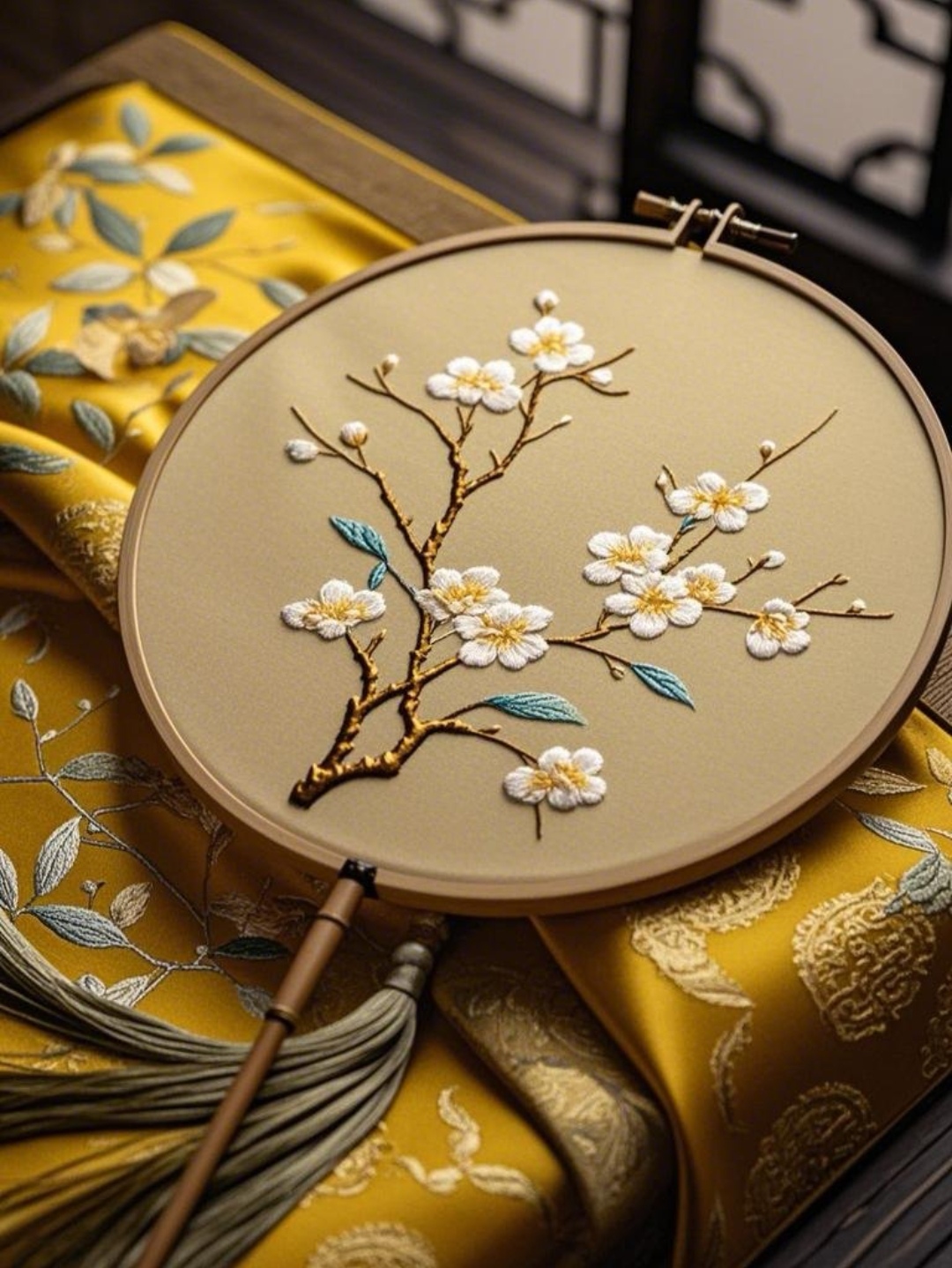 暗香浮动的梅花图案,手工刺绣的质感,每一针一线都透着精致