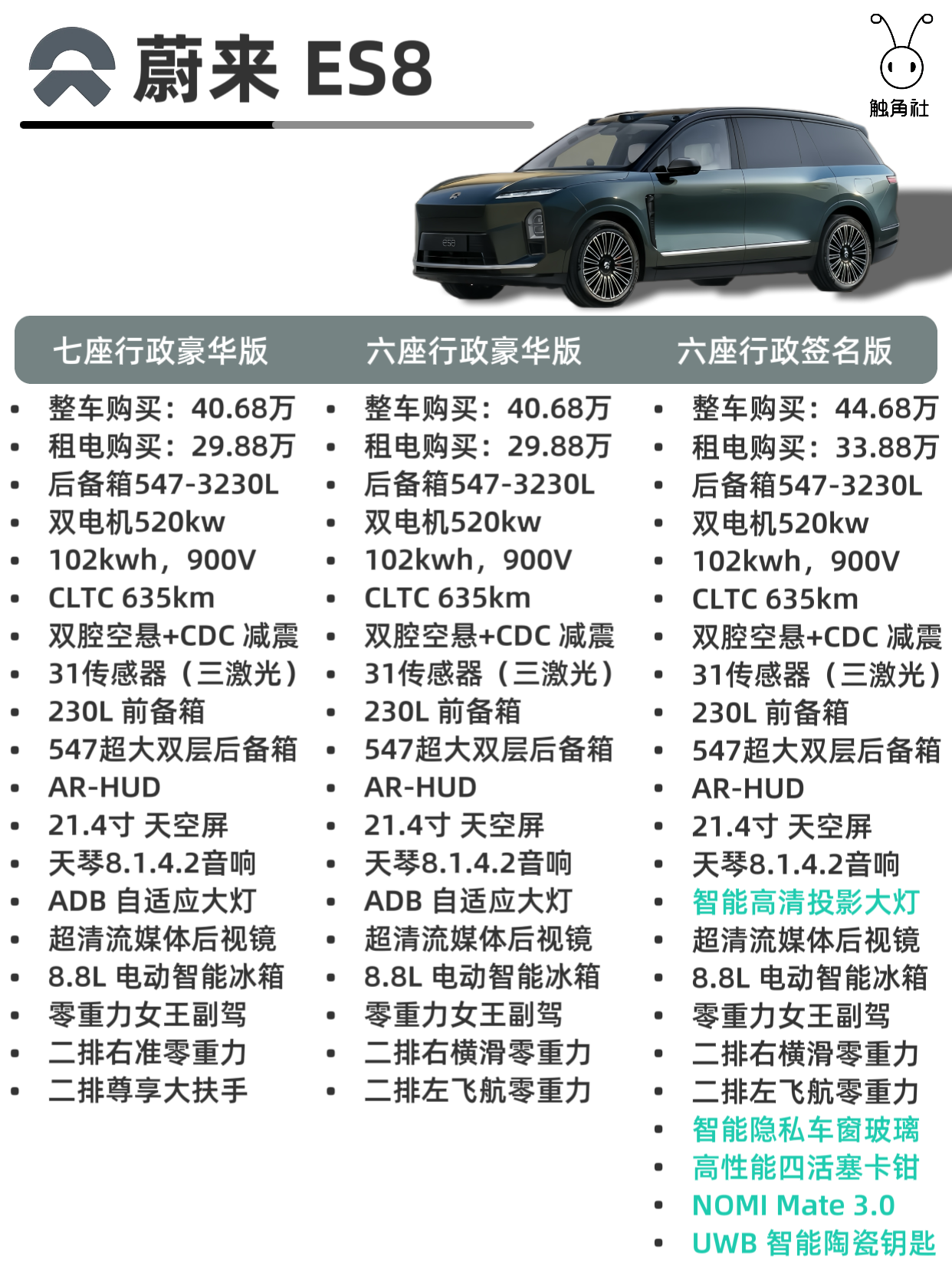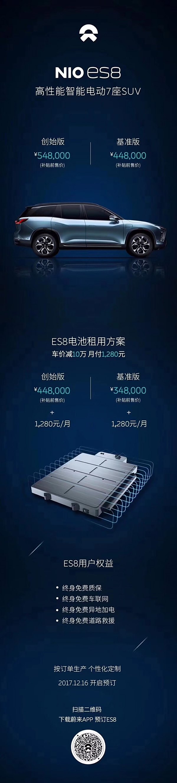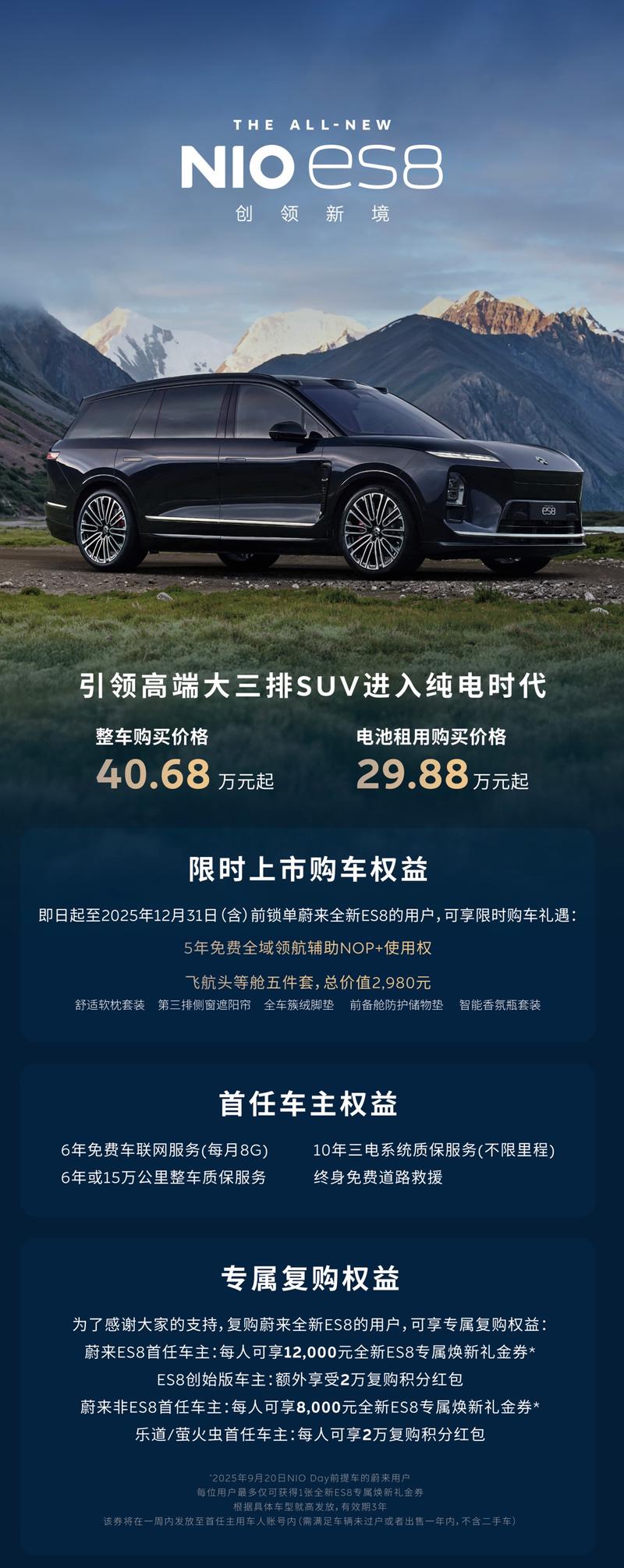 蔚来es8预售租电30.88万起,整车41.68万起
