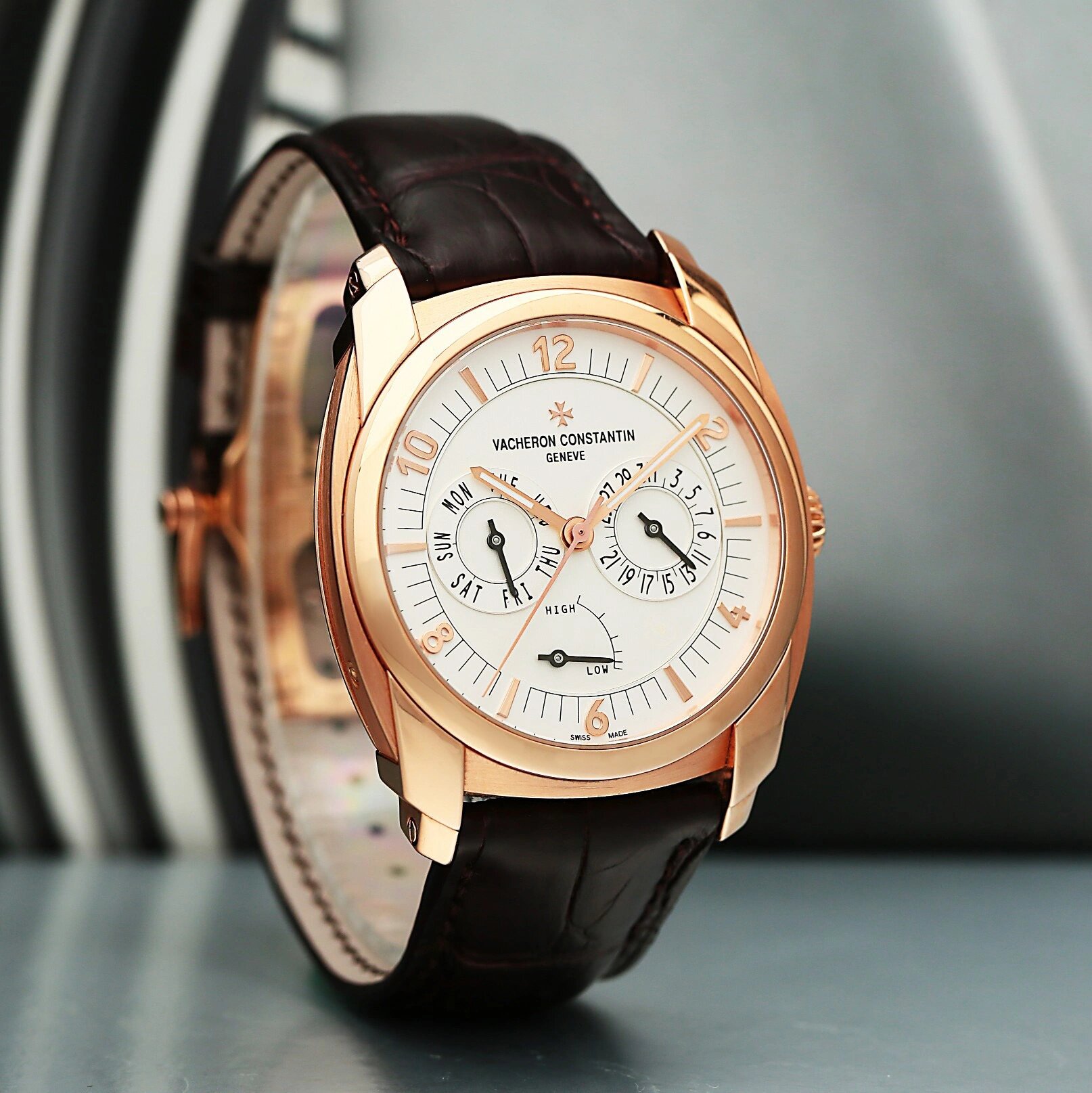 江诗丹顿奎德利系列85050/000r,18k玫瑰金钛金属自动机械男表