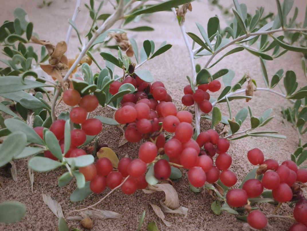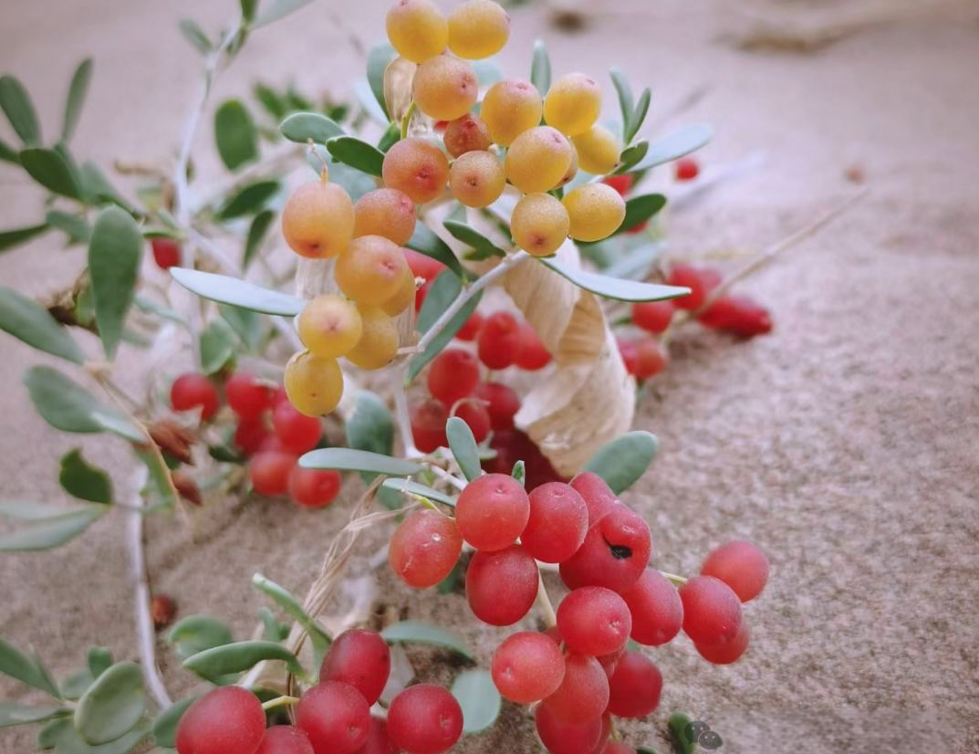 沙漠中的白刺果,鲜红欲滴让人惊艳!