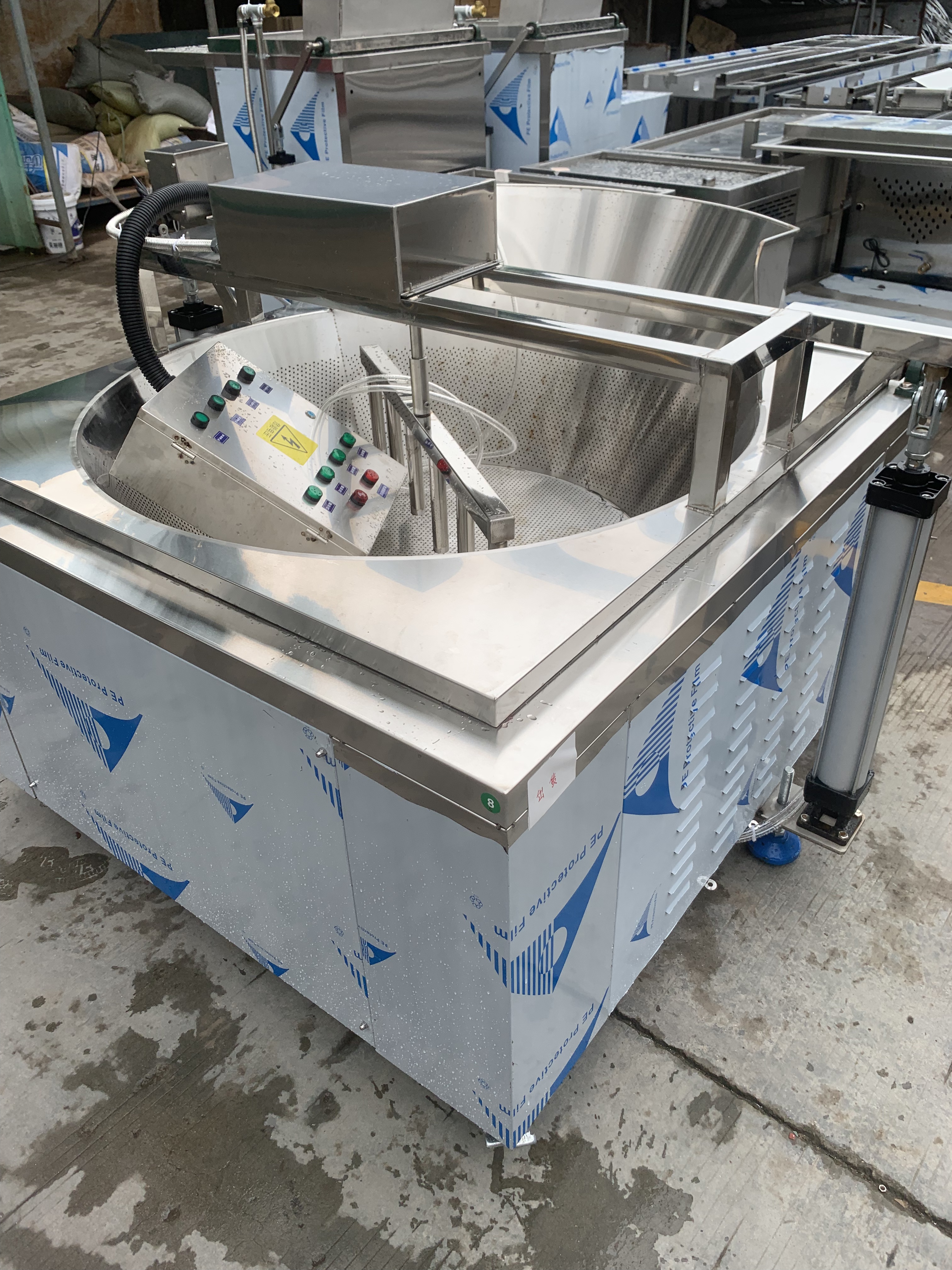 捷客迅品牌引以为傲的全自动薯片油炸锅,采用创新的翻斗式出料设计