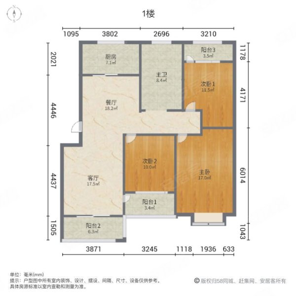 泰华滨河苑3室2厅户型图