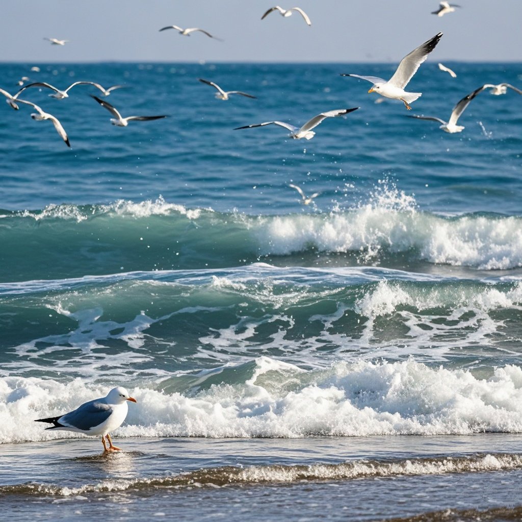 海鸥戏浪
