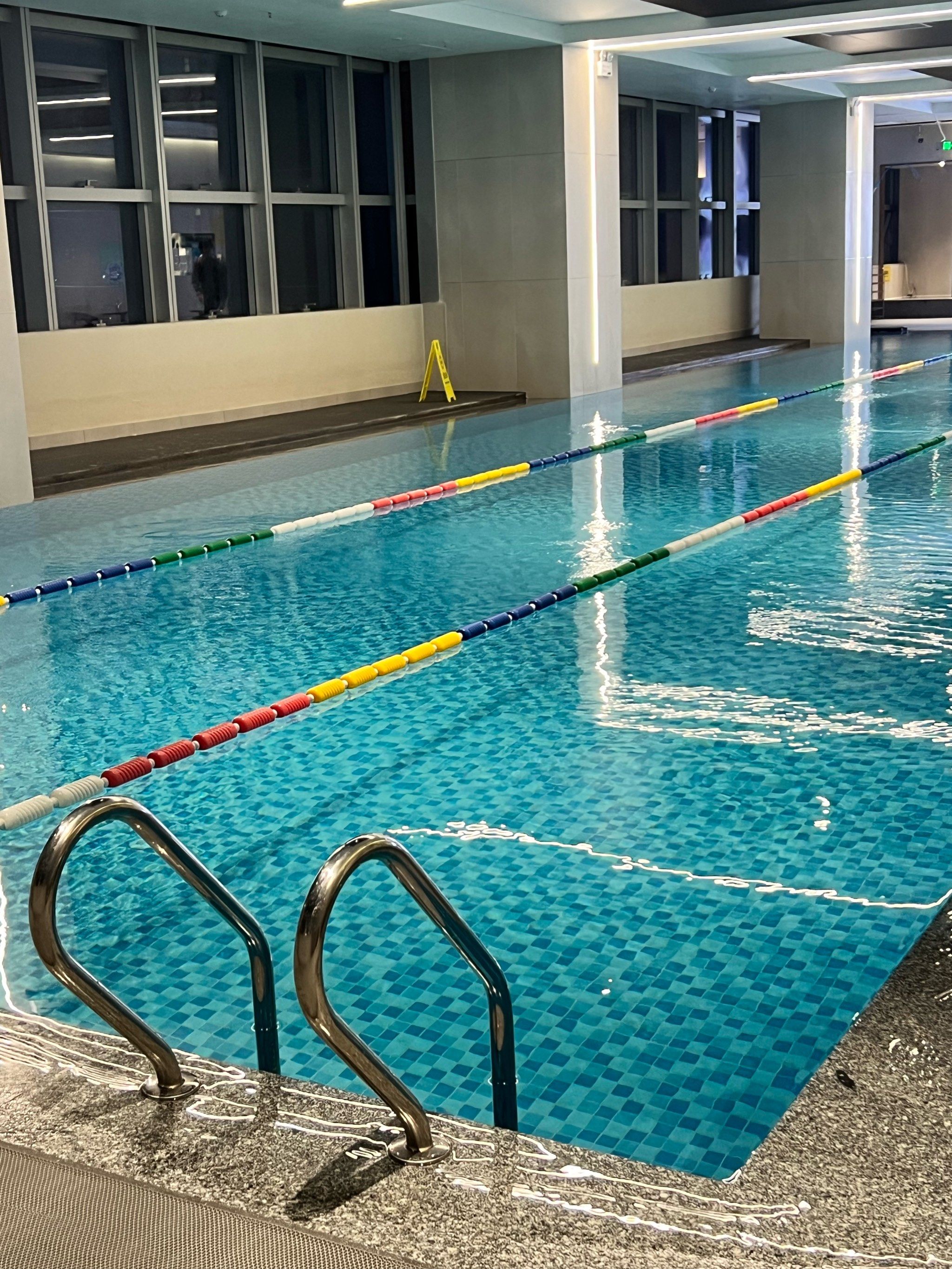 这个游泳健身馆在小区里综合运动中心的地下,入门游泳需要抵押物给
